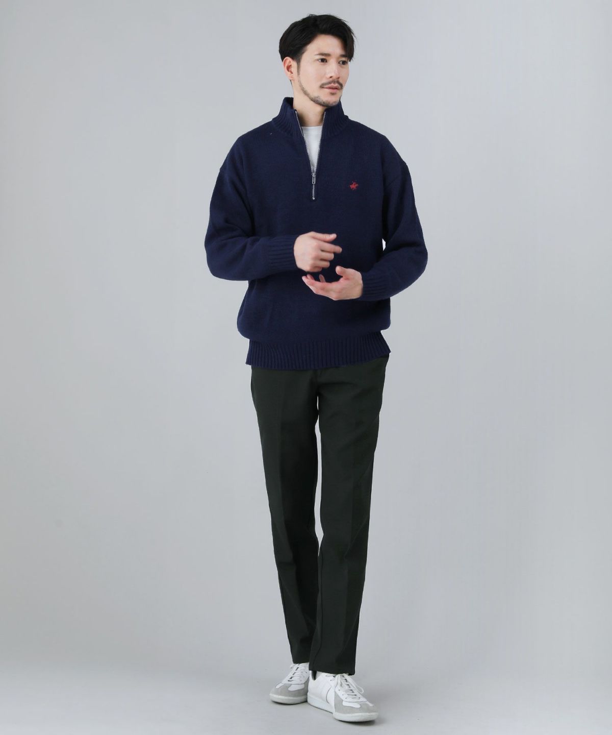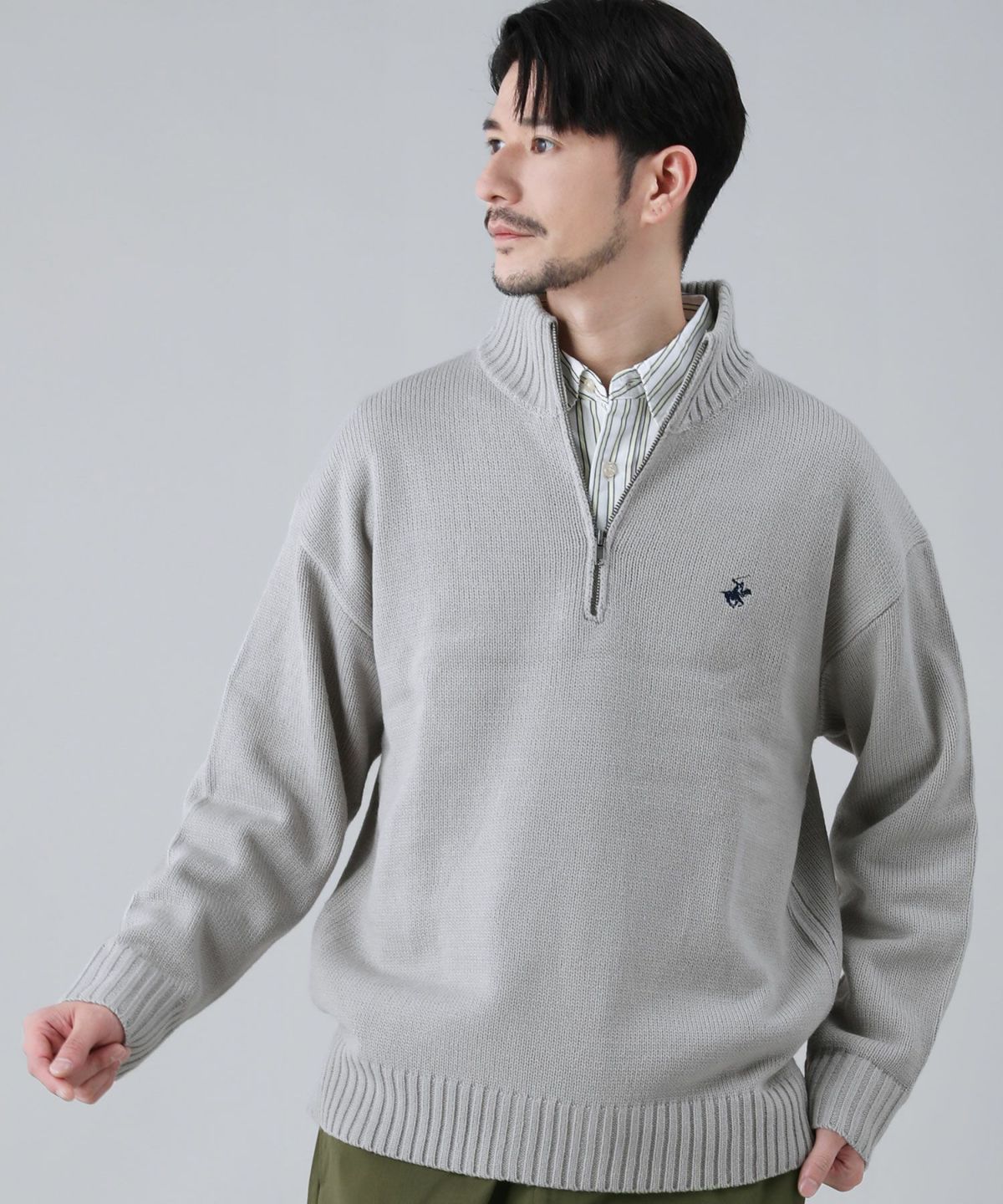 ワンポイントハーフジップセーター
