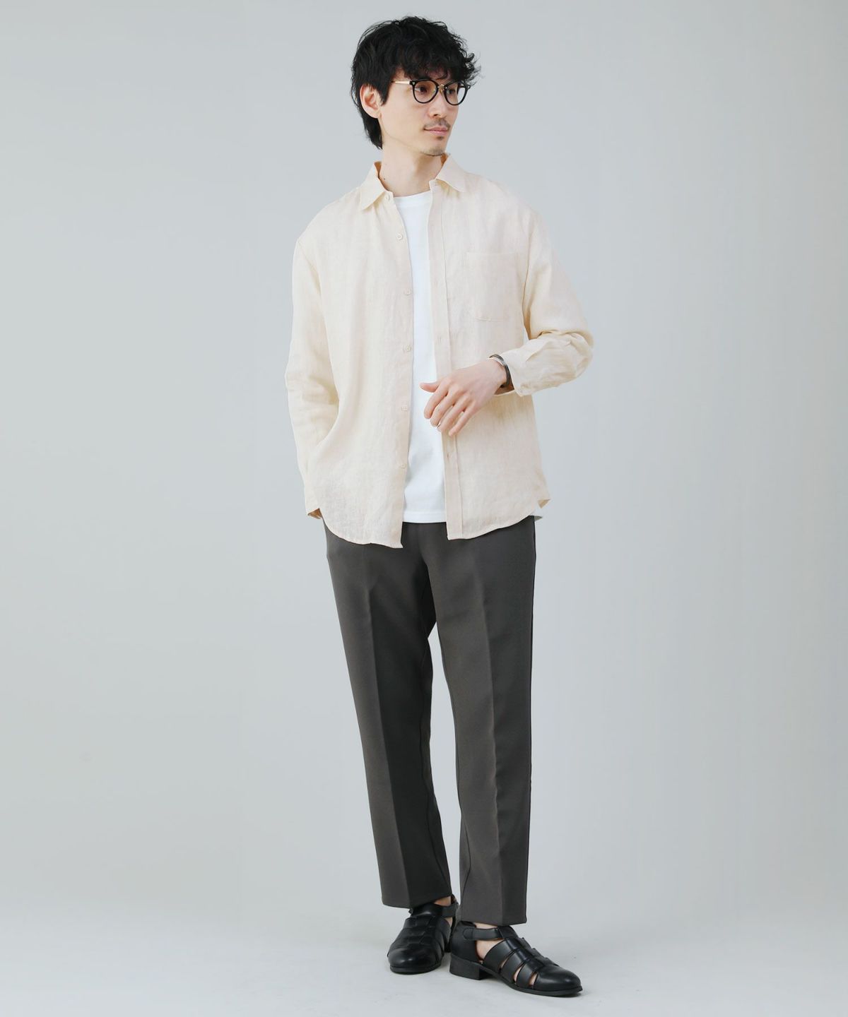 カラーは明るいホワイト、ナチュラルなアイボリー、グレーに加えて、春夏らしい爽やかなブルーとネイビーの5色展開。気取りすぎずそれでいて品のある印象を作り出してくれる素朴な風合いの麻100%シャツは、さっとラフに羽織るだけでもお洒落に決まるアイテムです。