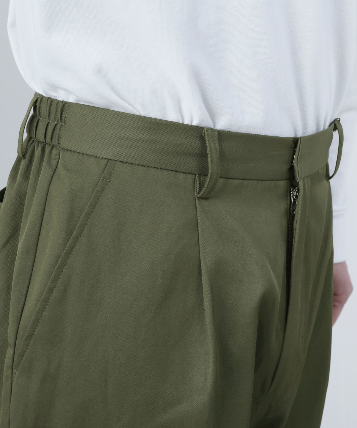 ゆとりのあるサイズ感でストレスフリーな穿き心地ながら、足首に向かって細くなるテーパードシルエットにすることで、ゆるすぎない大人のワイドパンツに仕上げました。