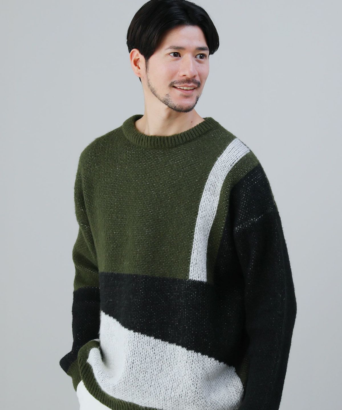 三色を切り替えるようにして組み合わせたパネル柄に仕上げました。落ち着いた配色で、キレイめ、カジュアルどちらのスタイルにも合わせやすいアイテムです。