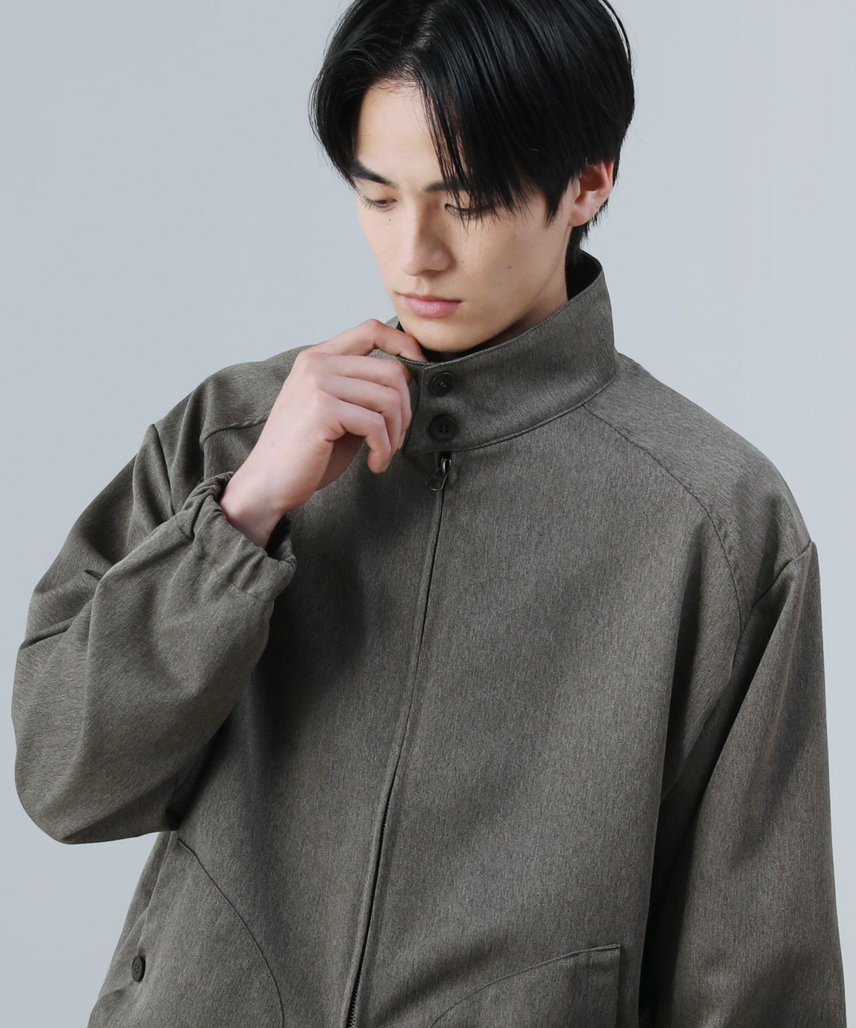 独特な風合いとほど良い光沢があるへリンボン生地を採用し、キレイめにもカジュアルにも着回していただけるアイテム。ゆったりとした身頃と、生地がたまるように設計された袖口が、程よいボリューム感を作り出します。