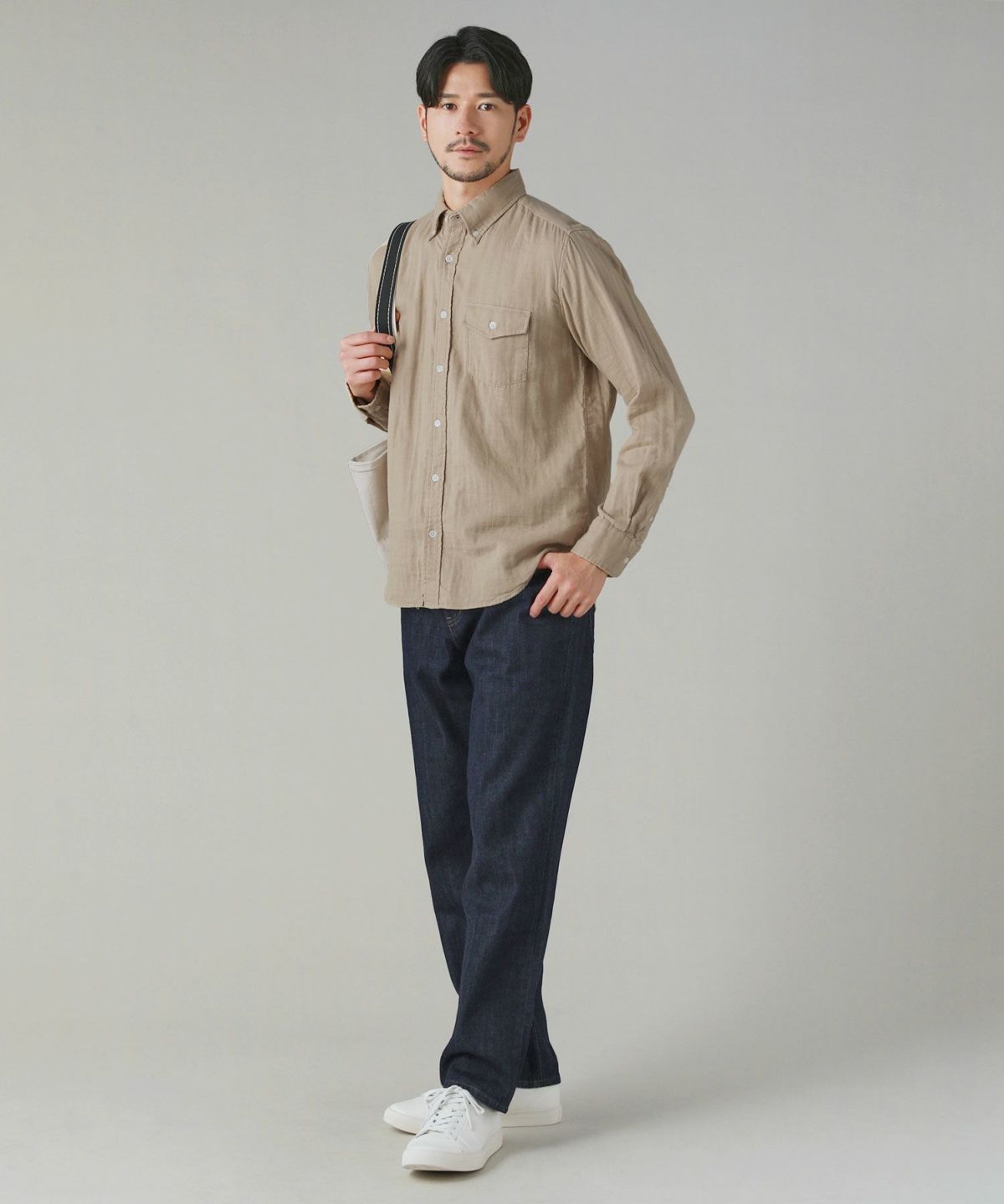 日本製コットン100%ダブルガーゼボタンダウン長袖シャツ