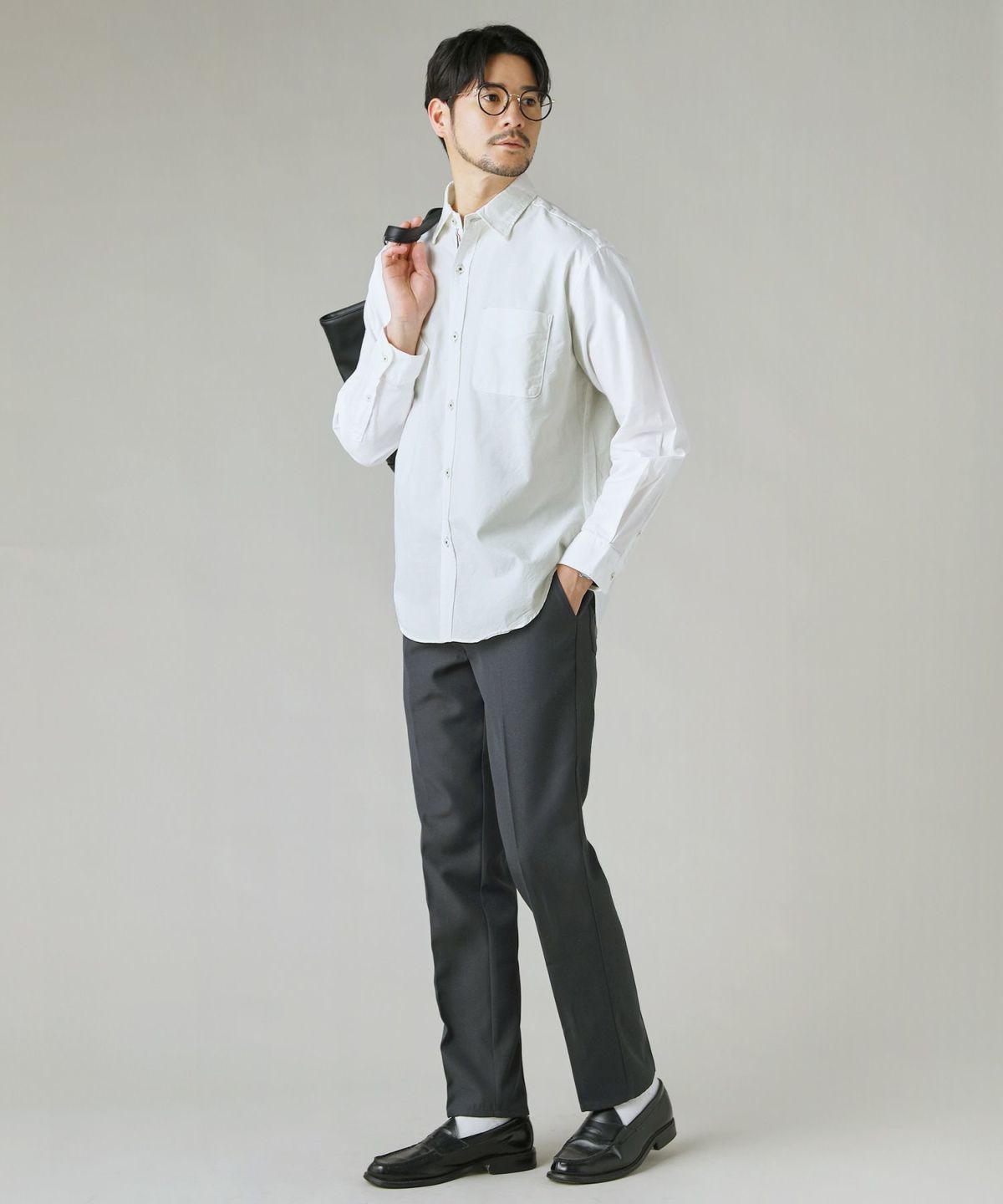 レギュラーシャツとして着用するのはもちろん、ライトアウター感覚でカットソーやTシャツの上に重ねて軽やかな装いにまとめるのもオススメ。カジュアルなデニムからキレイめなスラックスまで相性が良く、ビジカジ利用にも適した汎用性の高い長袖シャツです。