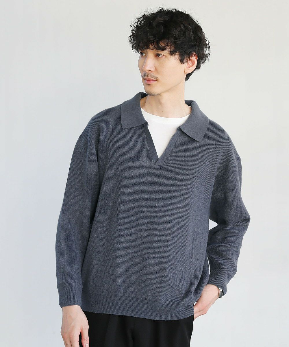 SPUでご好評を頂いているウォッシャブルニットシリーズから、スキッパーデザインの長袖ニットのご紹介です。