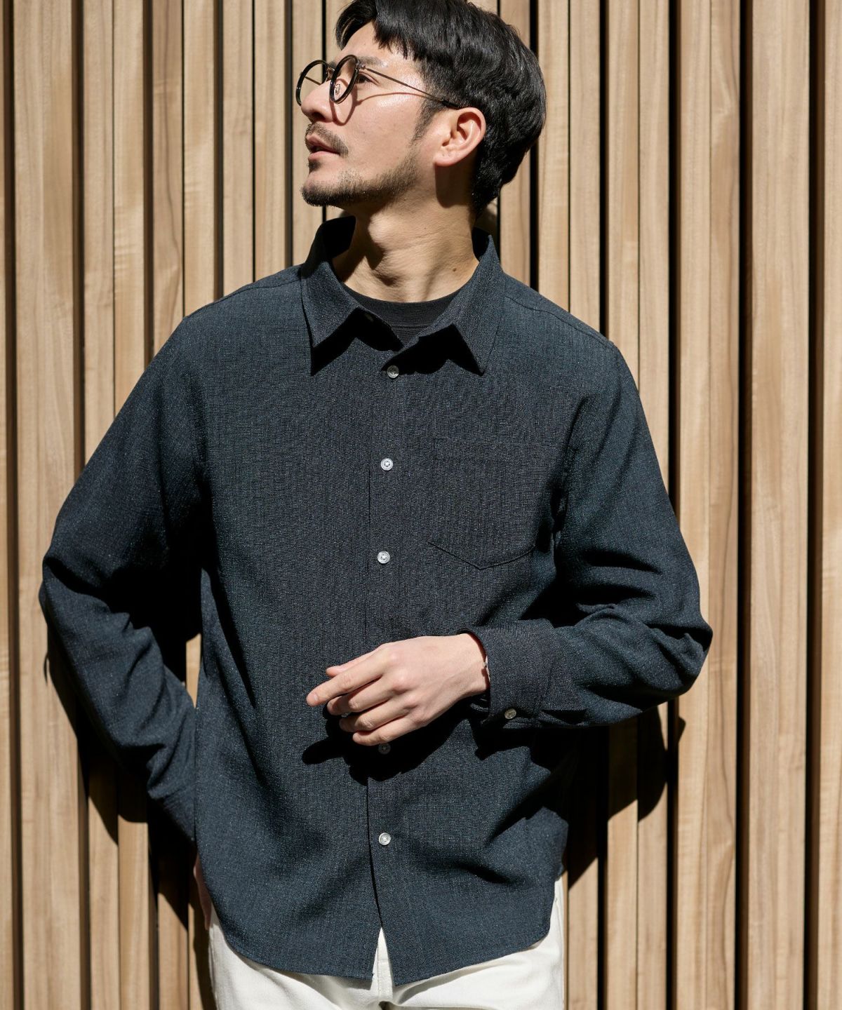 一枚で着てもかっこよく決まるよう計算されたセミワイド気味の細身シルエットです。窮屈感のない程よい細身シルエットに素朴な風合いの生地を掛け合わせることで、シャツらしいきちんと感を残しつつリラクシーな雰囲気も漂わせるお洒落な春夏向けシャツを完成させました。襟はキャンバス生地のラフさが活きるレギュラーカラーに。堅苦しさを感じさせないソフトな首回りとなっております。