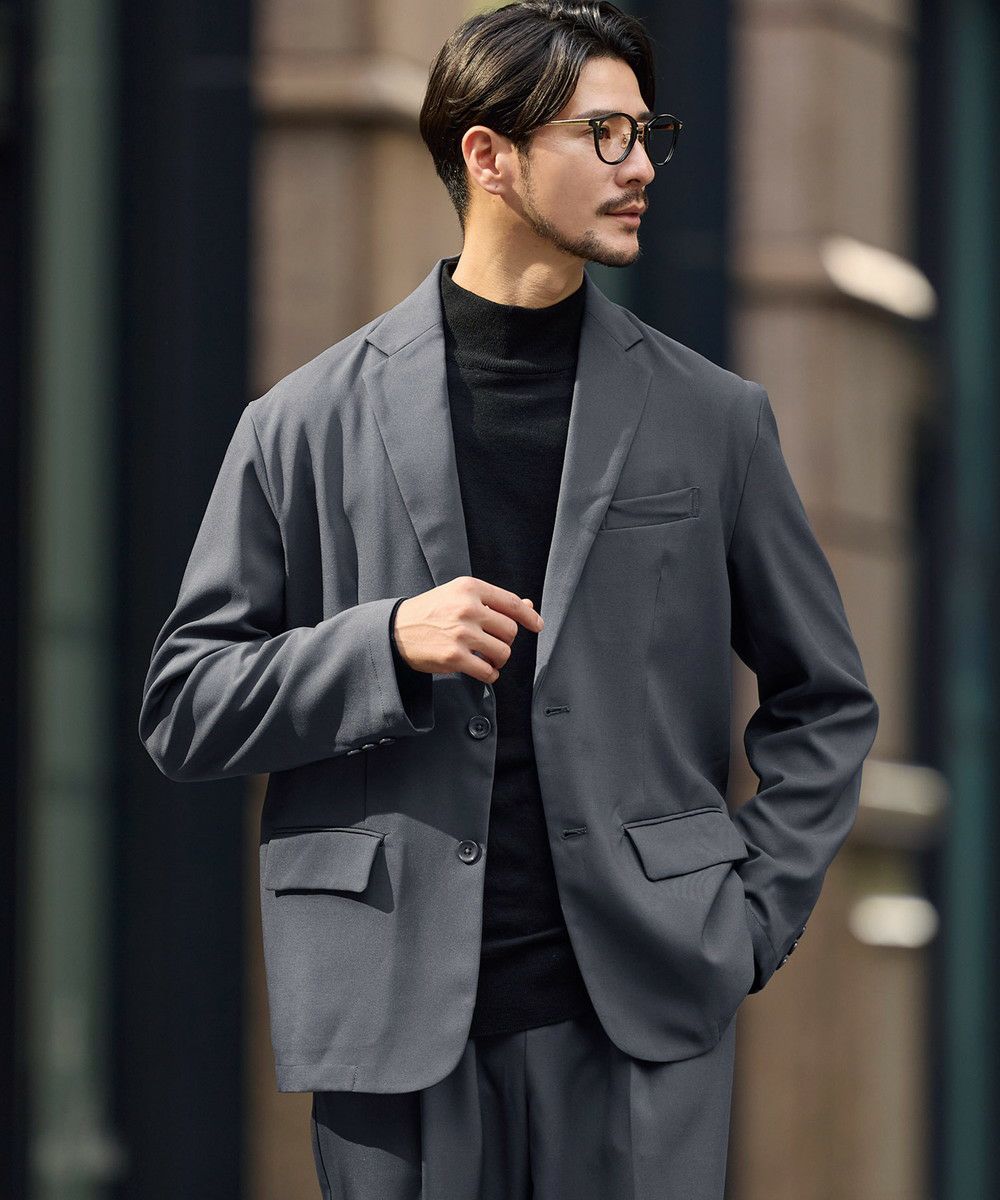 防シワ シングルテーラード&イージースリムパンツ セットアップ