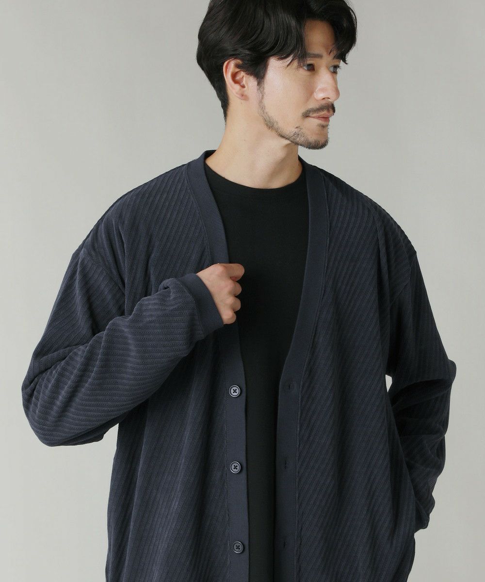 日本製ウール混ビッグワッフルニットソーポロカーディガン