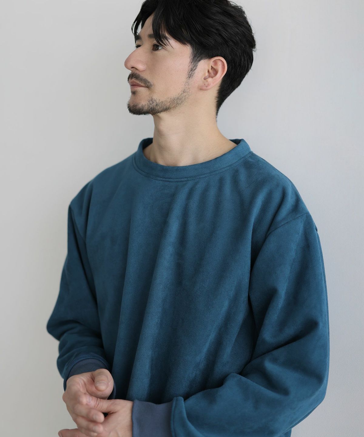 あったかもちもち裏起毛フェイクスウェードスウェットプルオーバー