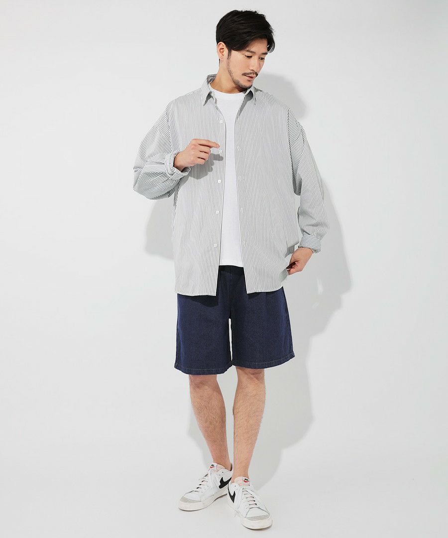 広がっているシルエットなので、コーディネートするときはトップスにもゆったりとした大きめのシルエットのアイテムを合わせるのが鉄則。上下同じシルエットで揃えることで旬の着こなしが完成します。