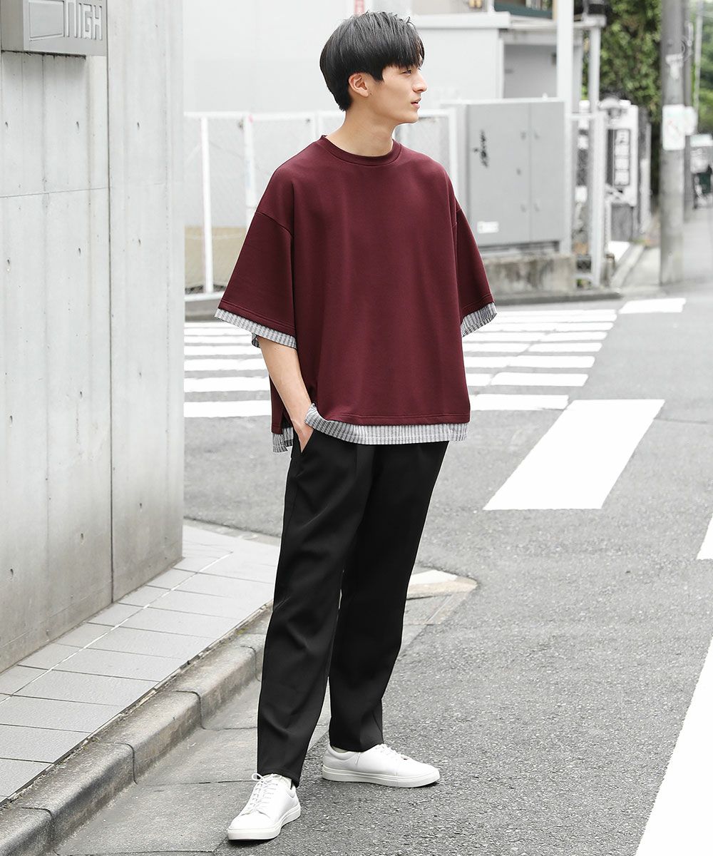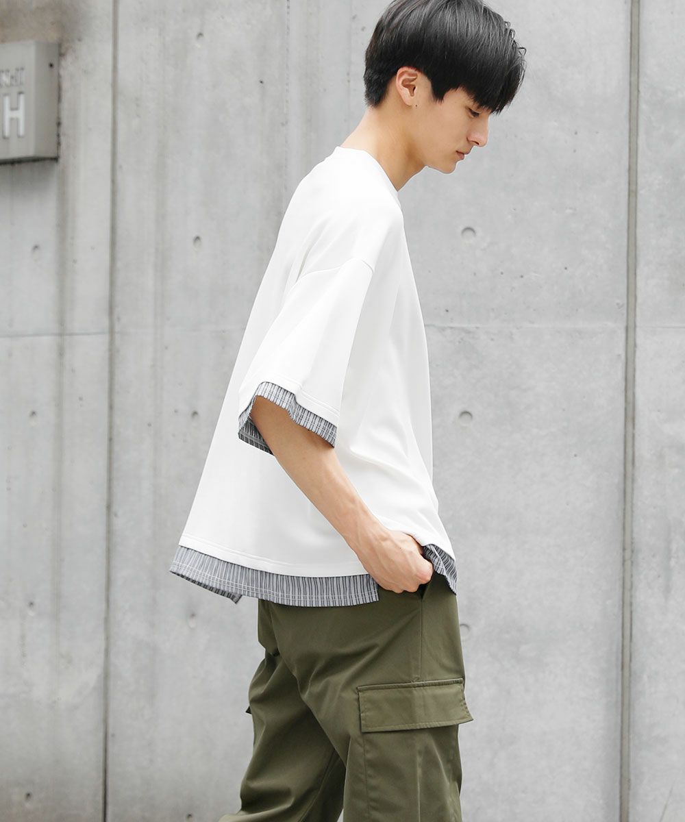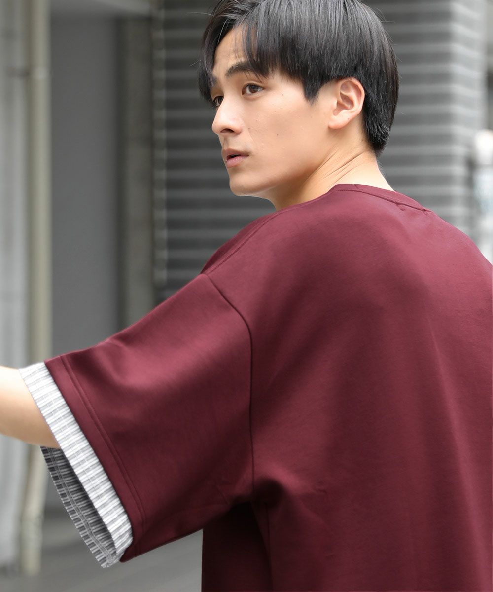 半袖フェイクレイヤードオーバーサイズポンチTシャツ