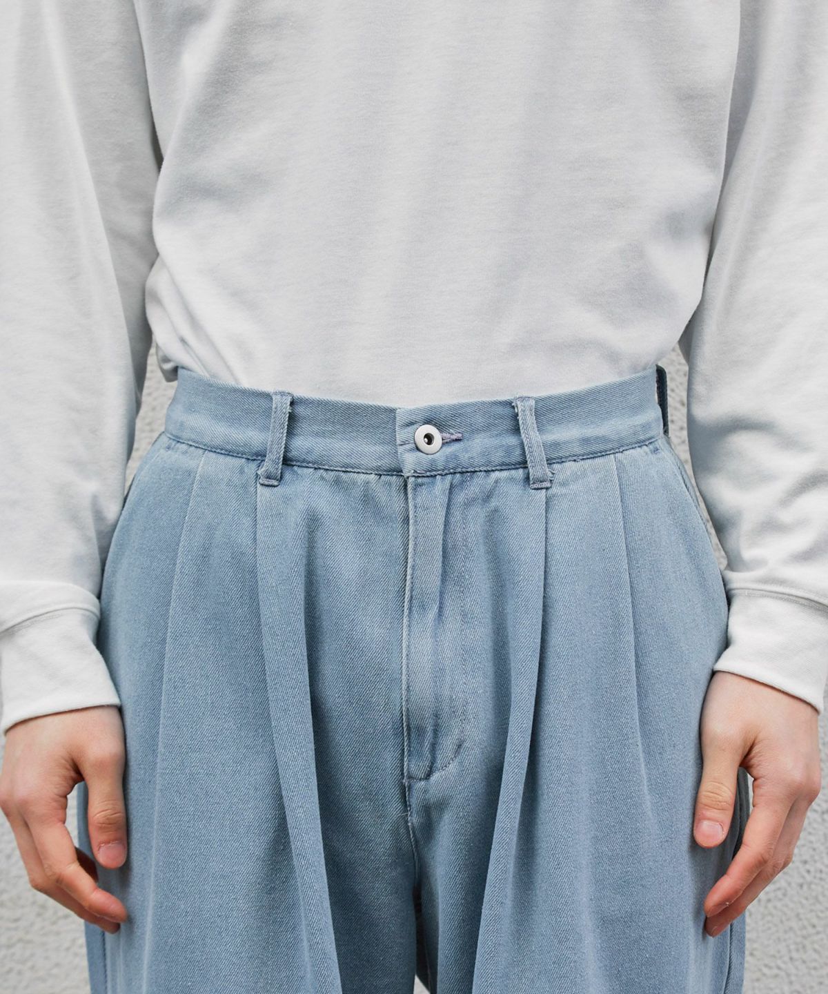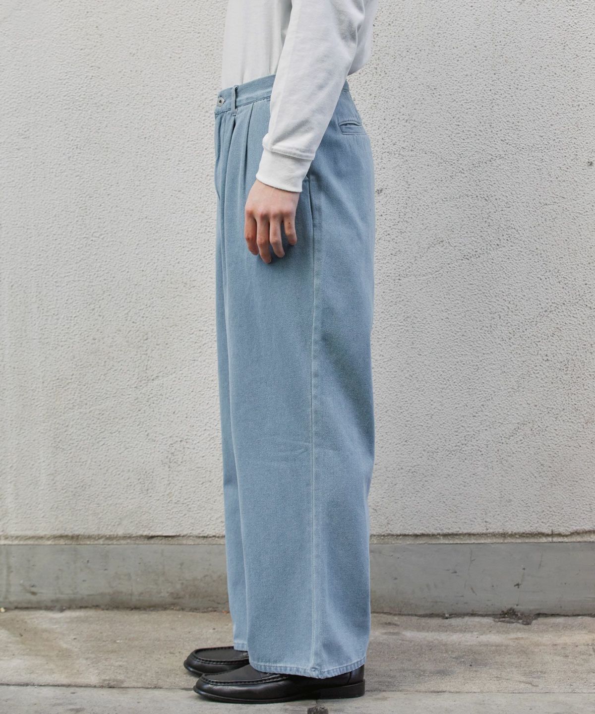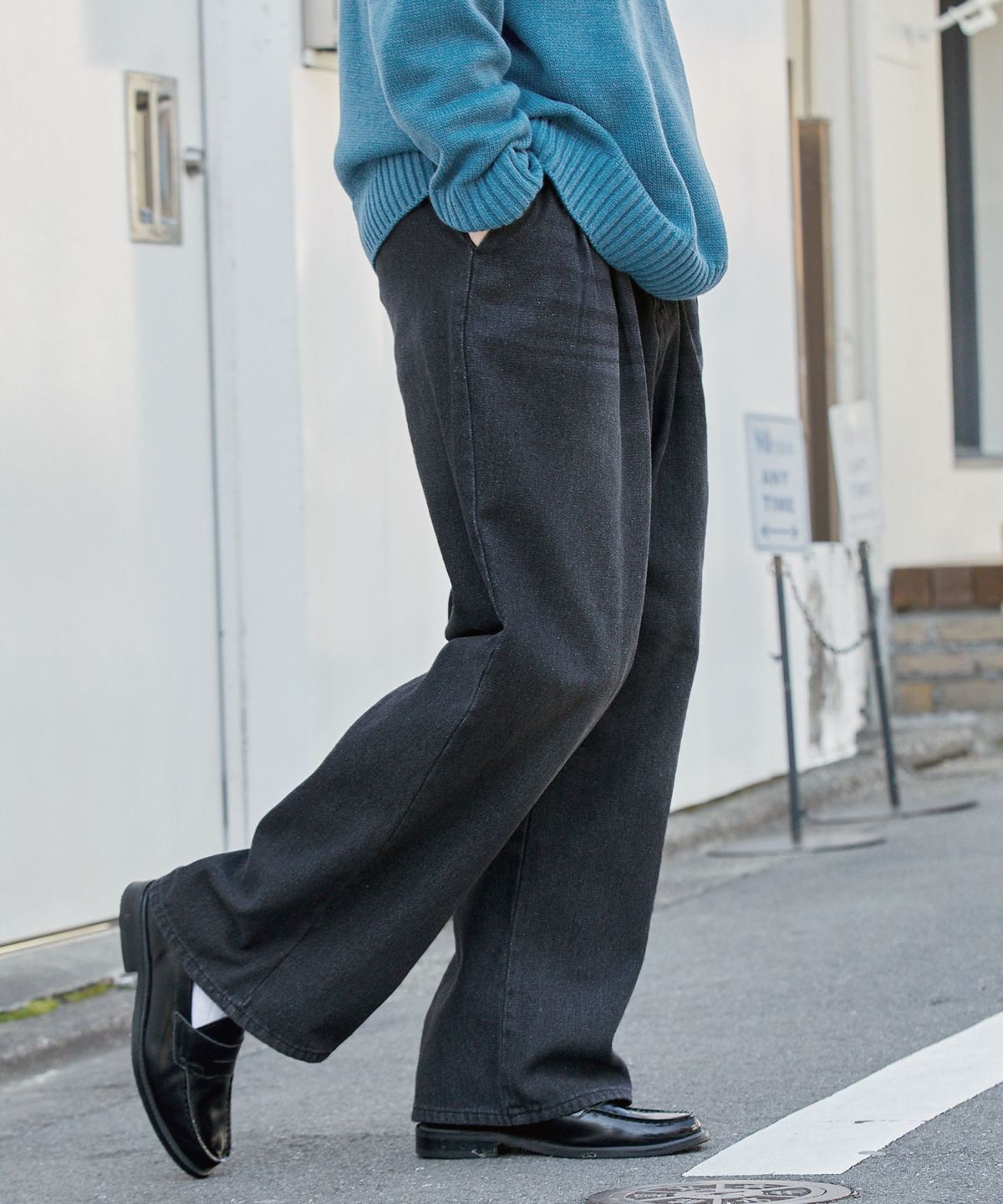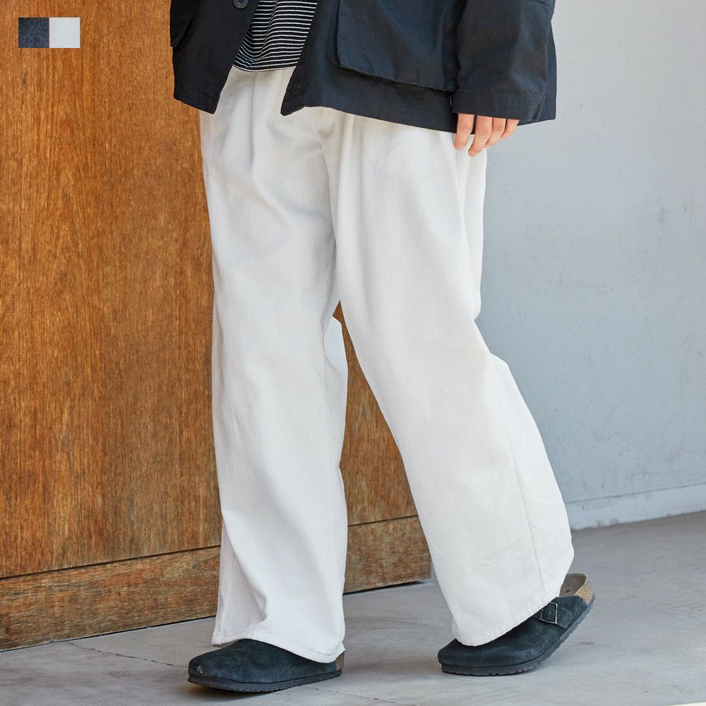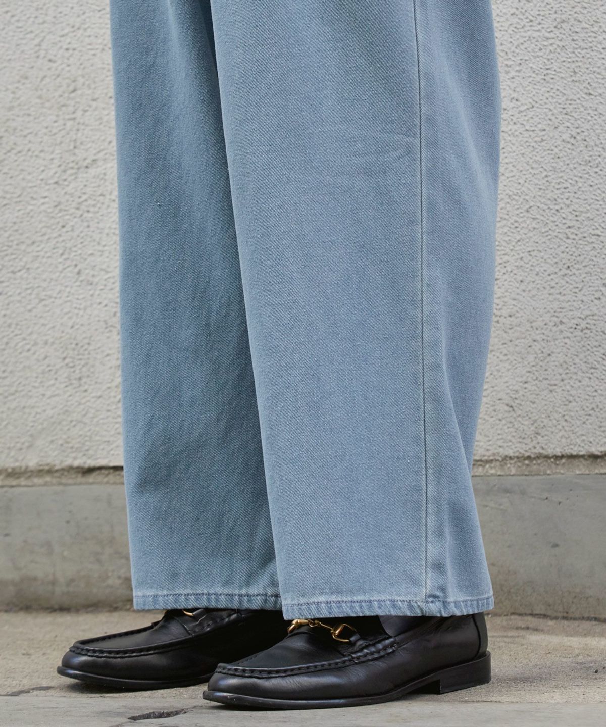 ストンとした落ち感とヒップから裾にかけての太いシルエットが特徴で、リラックス感がありつつ上品な印象で穿きこなせます。ウエストに入った2タックが腰回りにゆとりを持たせ、キレイめな表情をプラス。旬のシルエットが普段のコーデに変化を与えてくれる着回し力抜群のアイテムです。