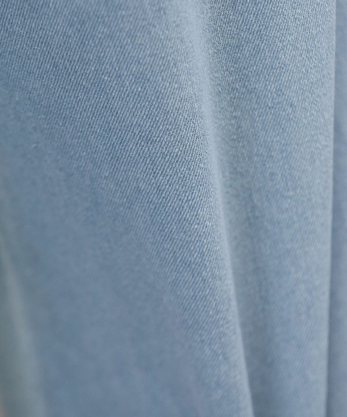 素材には、適度な厚みでオールシーズン着用できる10オンスデニム生地を採用。綿100%デニムは程よいハリ感があり、脚をすらっとまっすぐに見せてくれます。柔らかな素材で穿き心地もよく、動作にストレスを感じません。