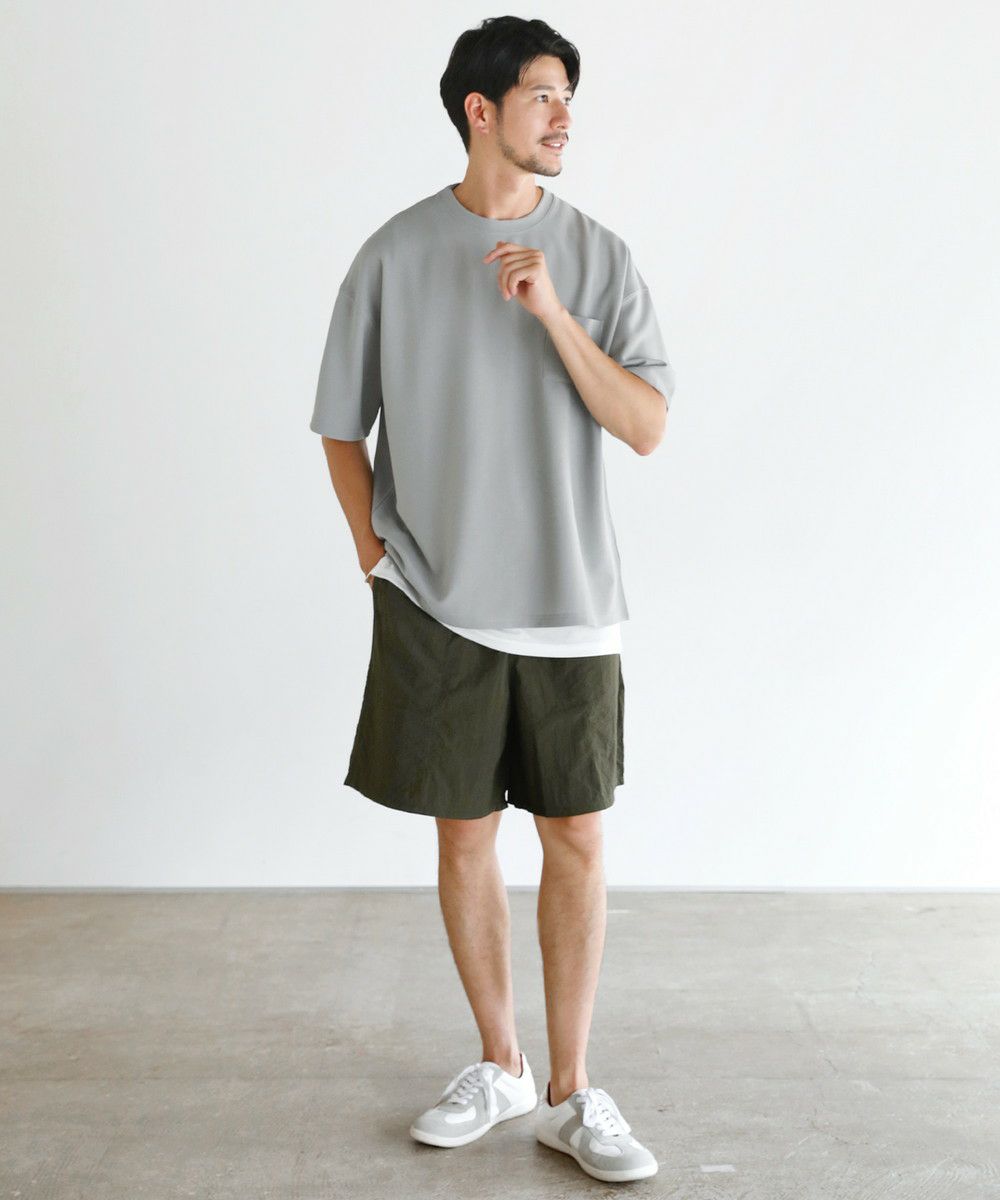 ナイロン地はマットな光沢があり、カジュアルさの中にこなれ感をプラス。適度なハリ感もあるためシルエットもキレイに決まります。シアサッカー地は凹凸のある表面が特徴で肌離れが良く、ムレを防いで快適な着用感を叶えます。