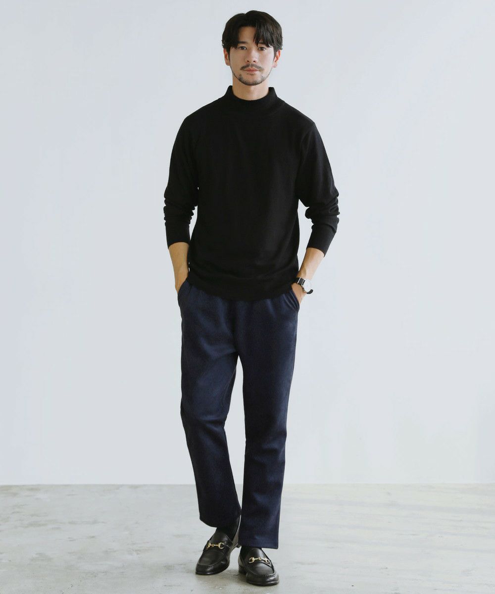 ジャケットやコートのインナーとして首元に程よい存在感をプラスしてくれるモックネックデザインのニット。スラックスを合わせればキレイめな印象に、デニムと合わせればカジュアルながら品よくまとまります。セットアップのインナーとしてもすっきり収まり、秋冬コーデの主軸アイテムとして重宝すること間違いなしです。
