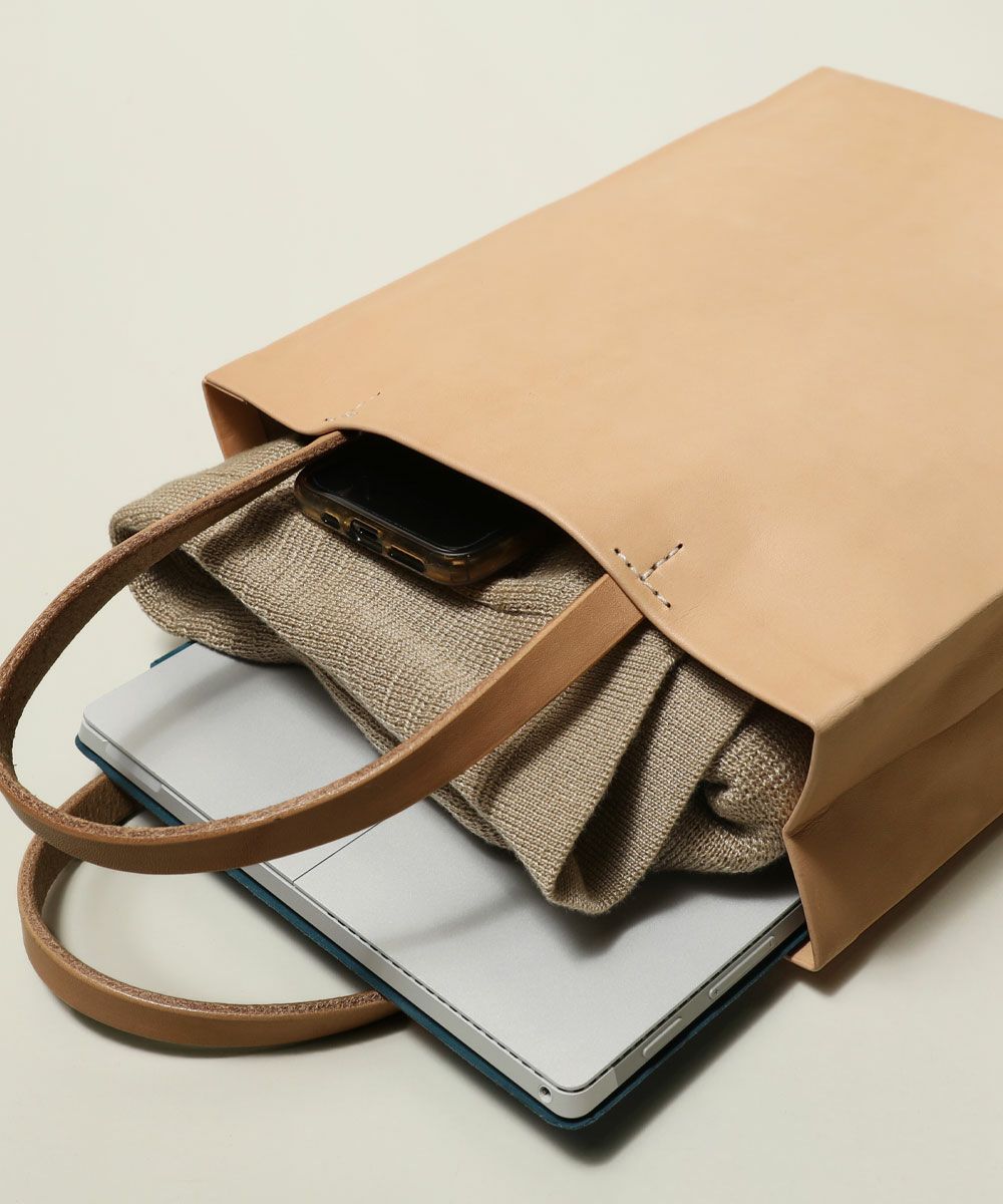 A4サイズも楽に収納でき、底に硬く加工した本革を入れているため、型崩れの心配も軽減します。