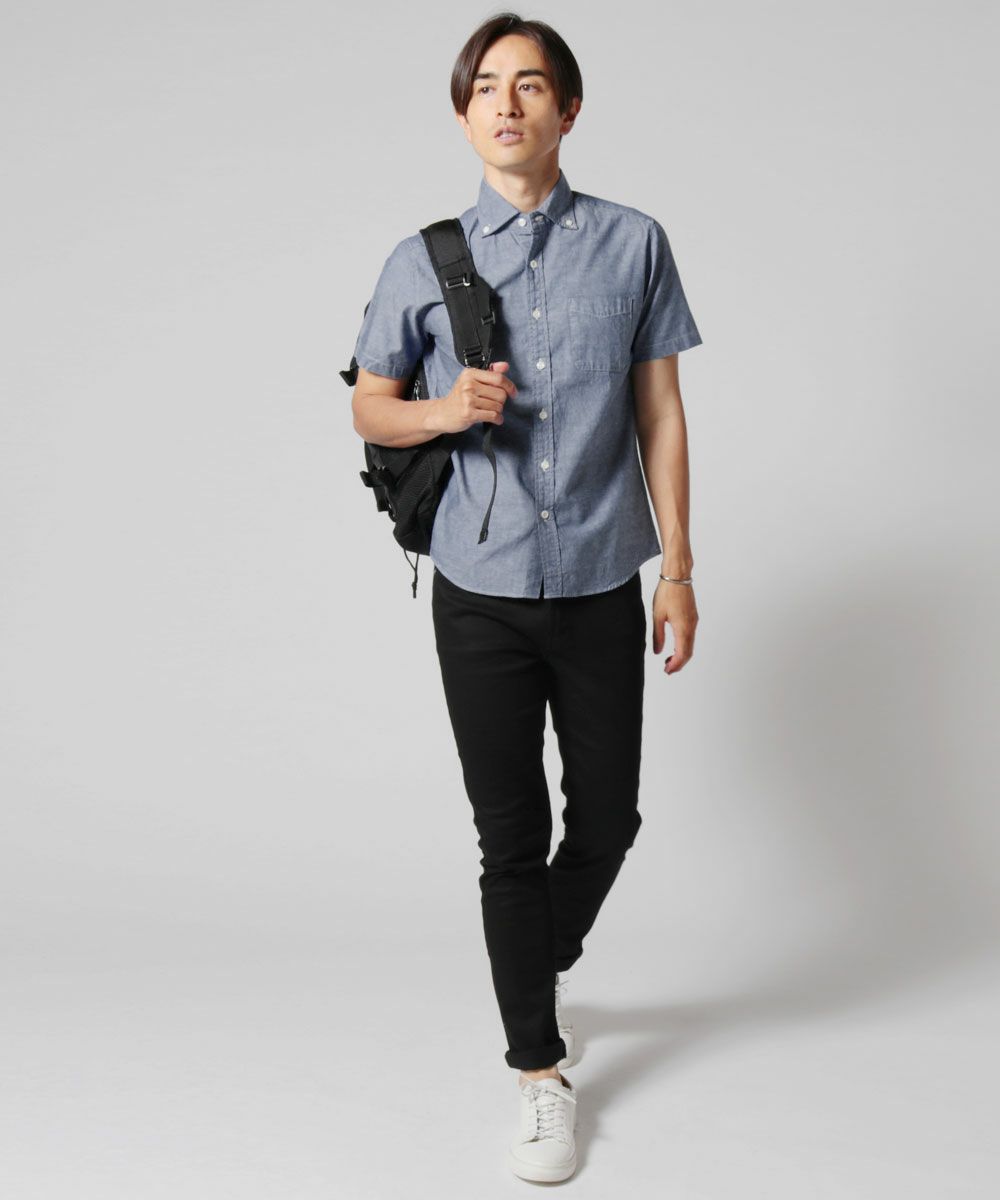日本製/オックスフォード/ブロード/綿麻/ダンガリー ワイドスプレッド ボタンダウン半袖シャツ メンズ