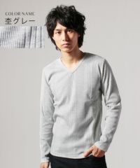 SPU/ランダムテレコVネック長袖カットソー