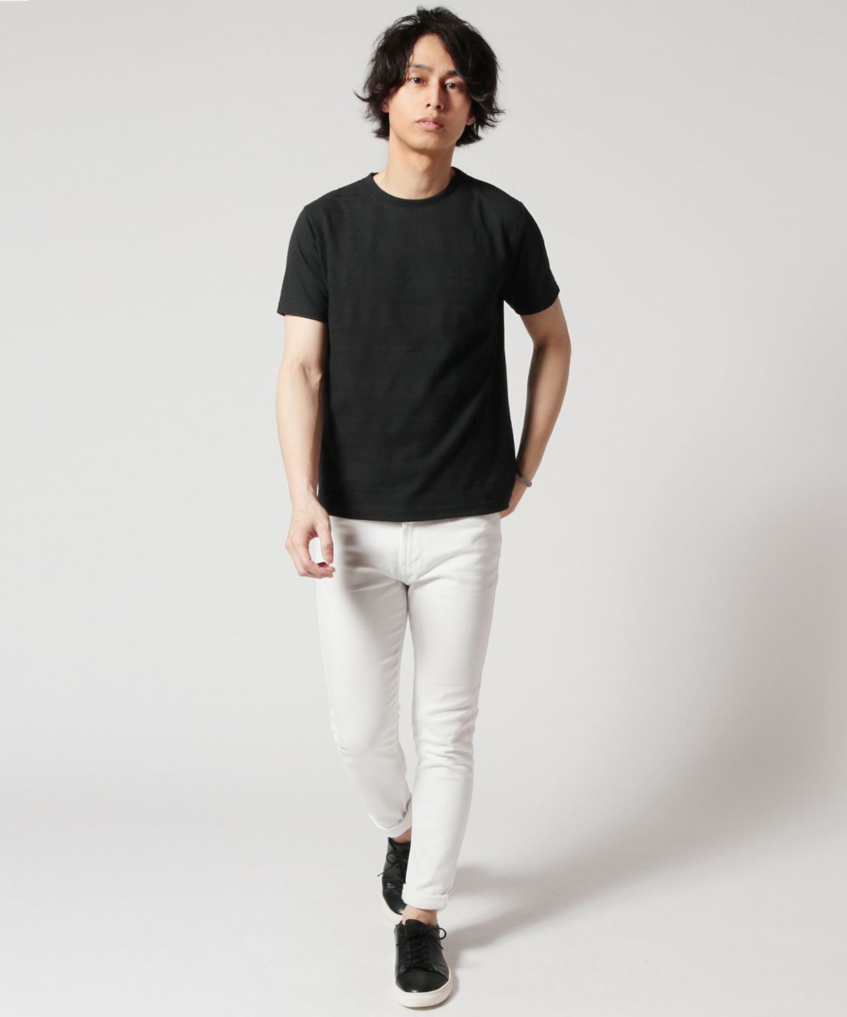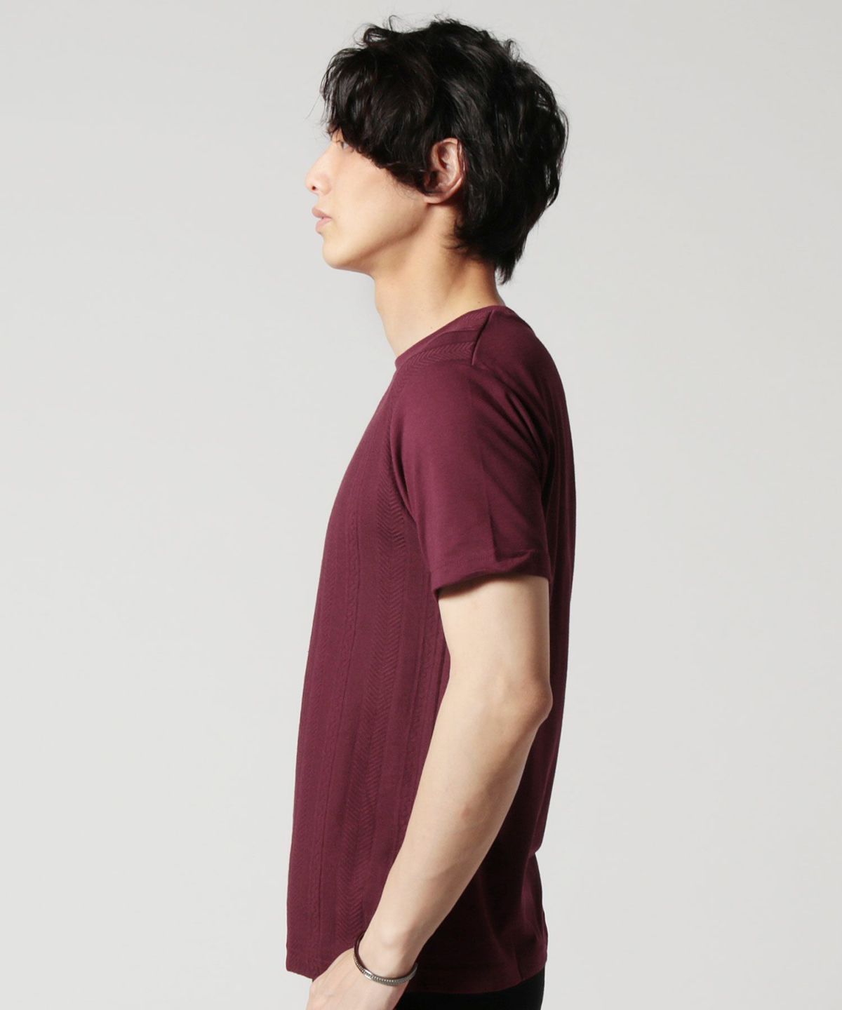 ●ほのかに浮かび上がる模様が目を惹く2タイプの半袖カットソー