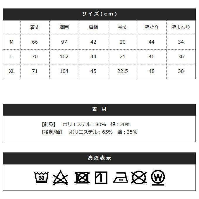 - 【後身/袖】ポリエステル:65% 綿:35%
