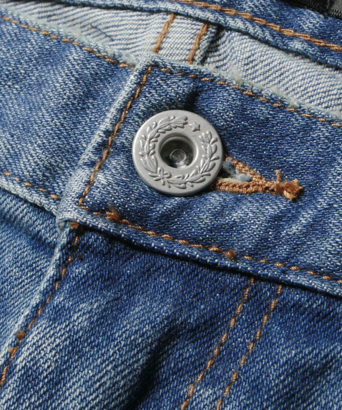 肌触りの良い綿とストレッチ性に優れたポリウレタンを混紡した生地です。ストレッチ性が高い素材のため、膝の屈伸時も突っ張ることなく快適に過ごせます。また、洗い込むとより表情豊かな色落ちが楽しめます。