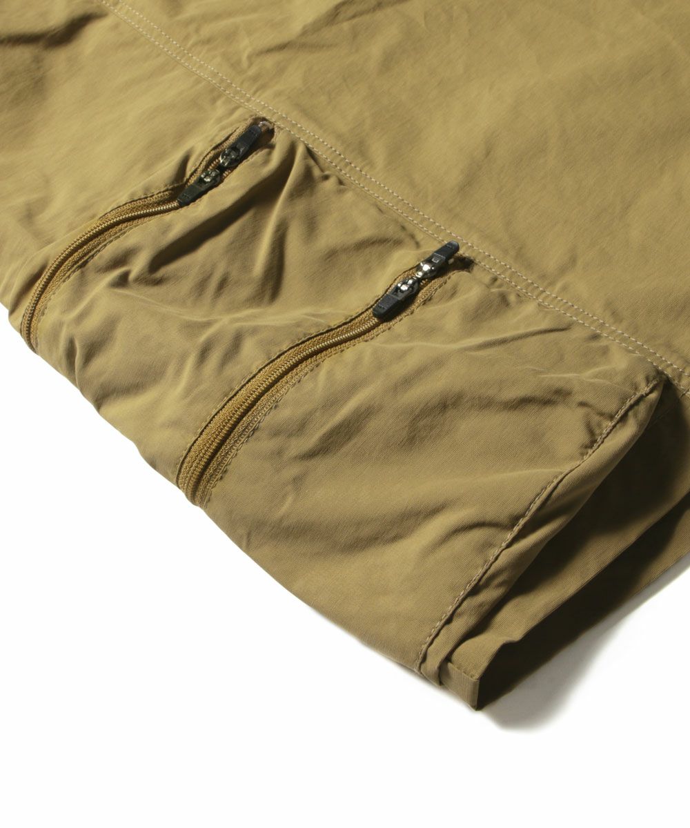 素材にはコットン60%とナイロン40%をブレンドした60/40クロスを使用。60/40クロスはアメリカのアウトドアブランドが1960年代に開発した素材で、湿気を吸うとコットンが膨張して水分の侵入を防ぎ、コットンより通気性が良くナイロンよりも磨耗に強いという特徴を備えています。更にフッ素樹脂をコーティングすることで優れた撥水・撥油性と防汚機能を生み出すテフロン加工を施しているので汚れも付きづらく手入れも簡単。生地本来の質感や柔軟性を損なわない、非常に機能的な生地に仕上がっています。