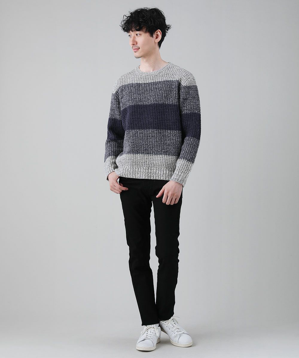 上からジャケットやコートを羽織りやすいよう、身幅や袖はやや細身に設計いたしました。お色味は合わせるアイテムを選ばない無地カラーだけでなく、コーディネートの主役になるボーダーグラデカラーもご用意しております。キレイめスタイルからカジュアルな着こなしまで、テイストを選ばず着回しが楽しめるアイテムです。
