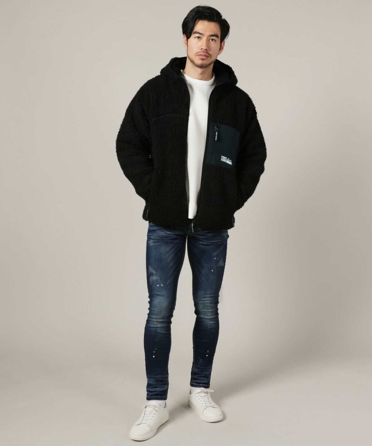 防寒性の高いカジュアルなパーカージャケットです。大粒のタンブリングボアで軽やかな着心地ながらも、空気を多く含むことができるので保温性抜群。ふんわりとした肉厚な生地感がクセになる優しい肌触りです。ボディ周りにゆとりのあるラフなサイズ感なので、重ね着をしても動作にストレスを感じません。逆開のジップを利用してインナーを見せるコーデを楽しめるのもポイント。カジュアルからストリートまで幅広いシーンで活躍する、高品質なジャケットです。