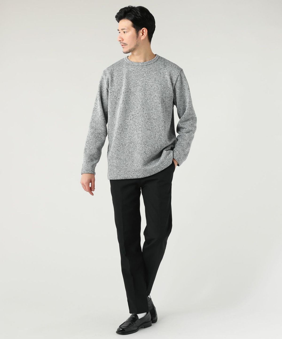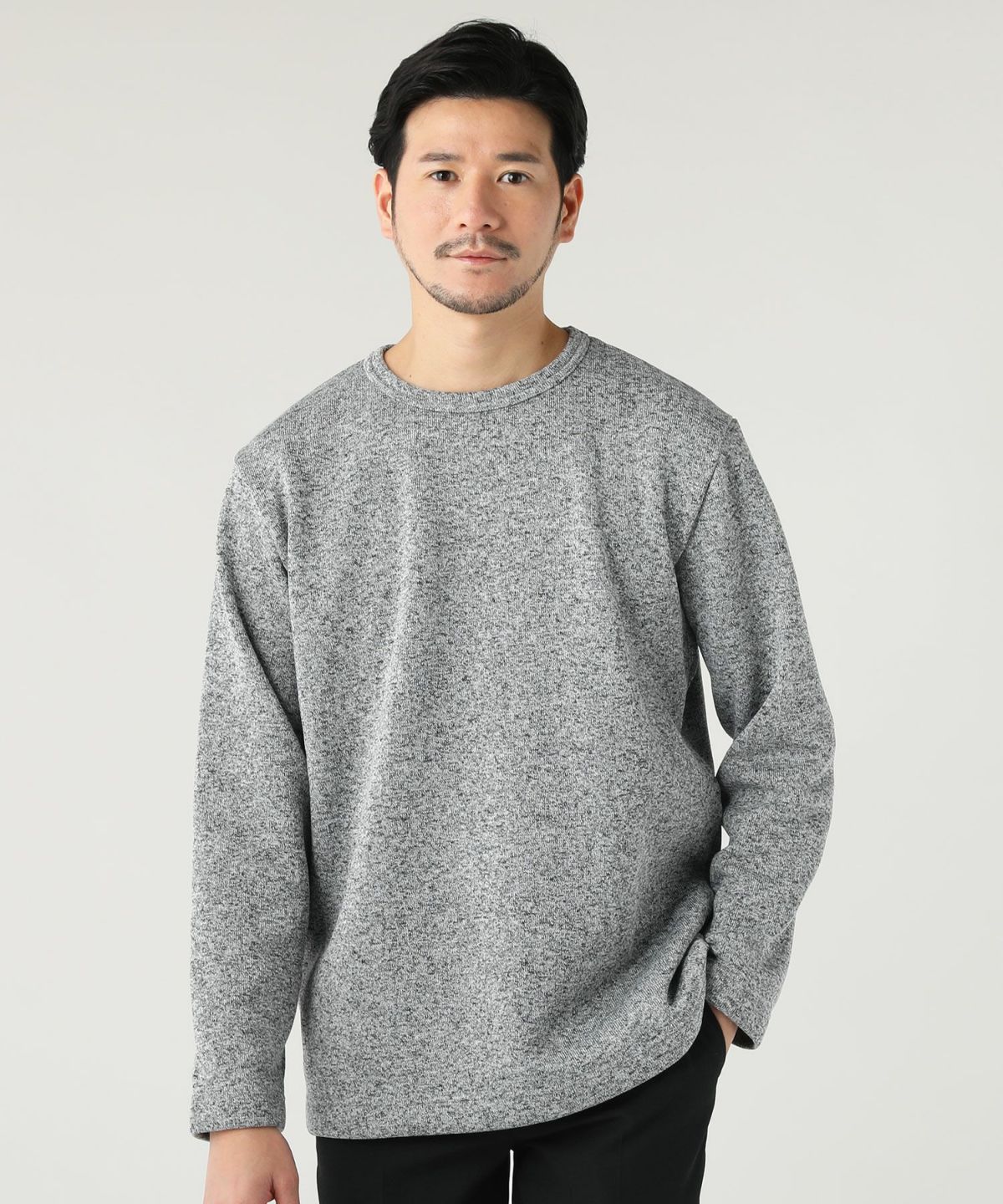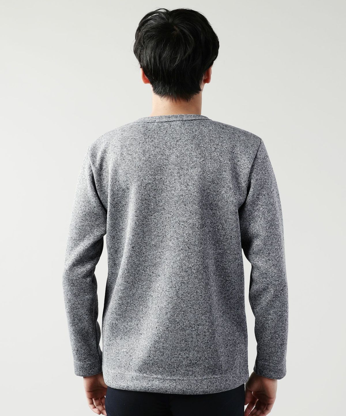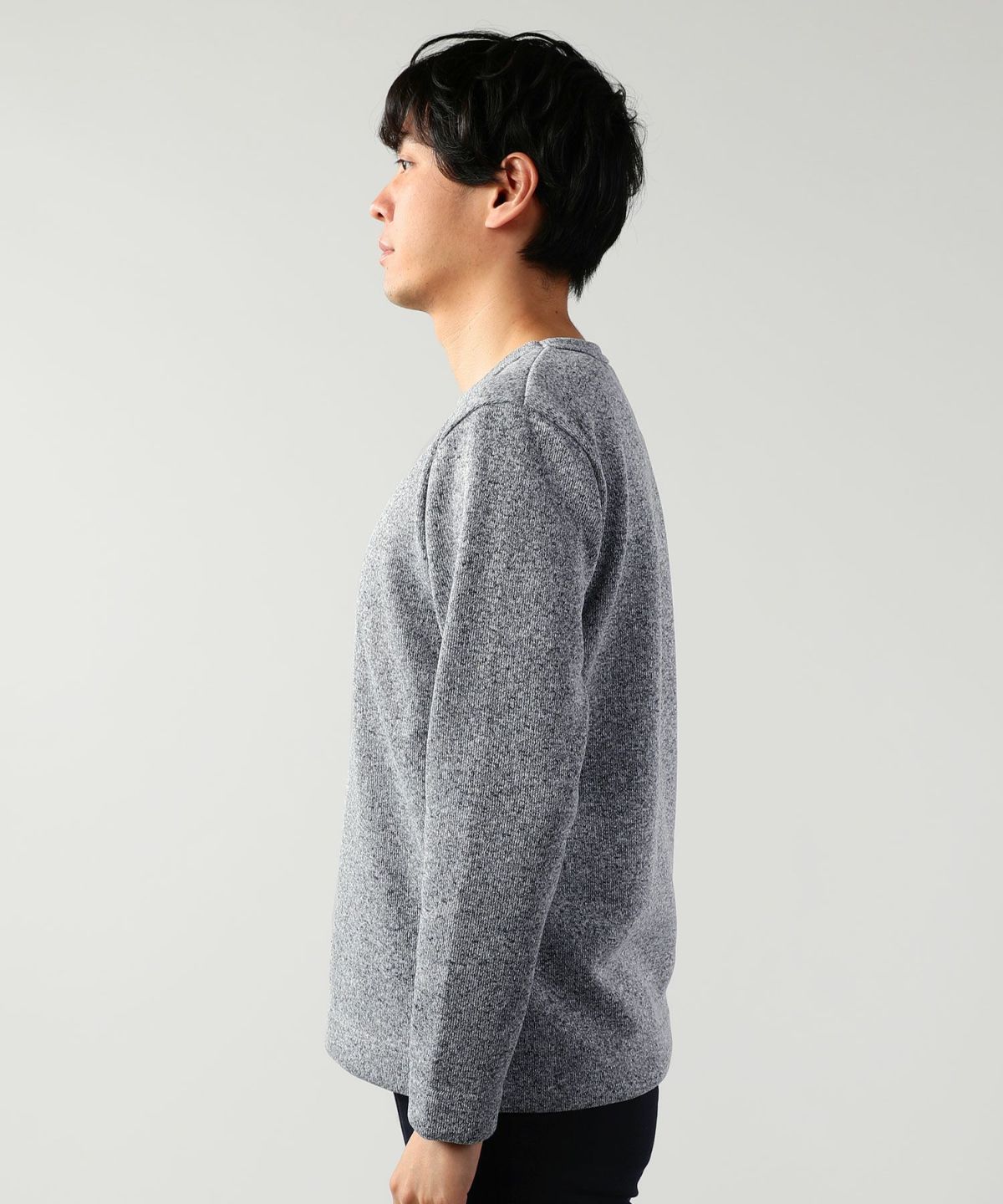 セーターとフリースの長所を兼ね備えたセーターフリース素材のクルーネックニットソーです。