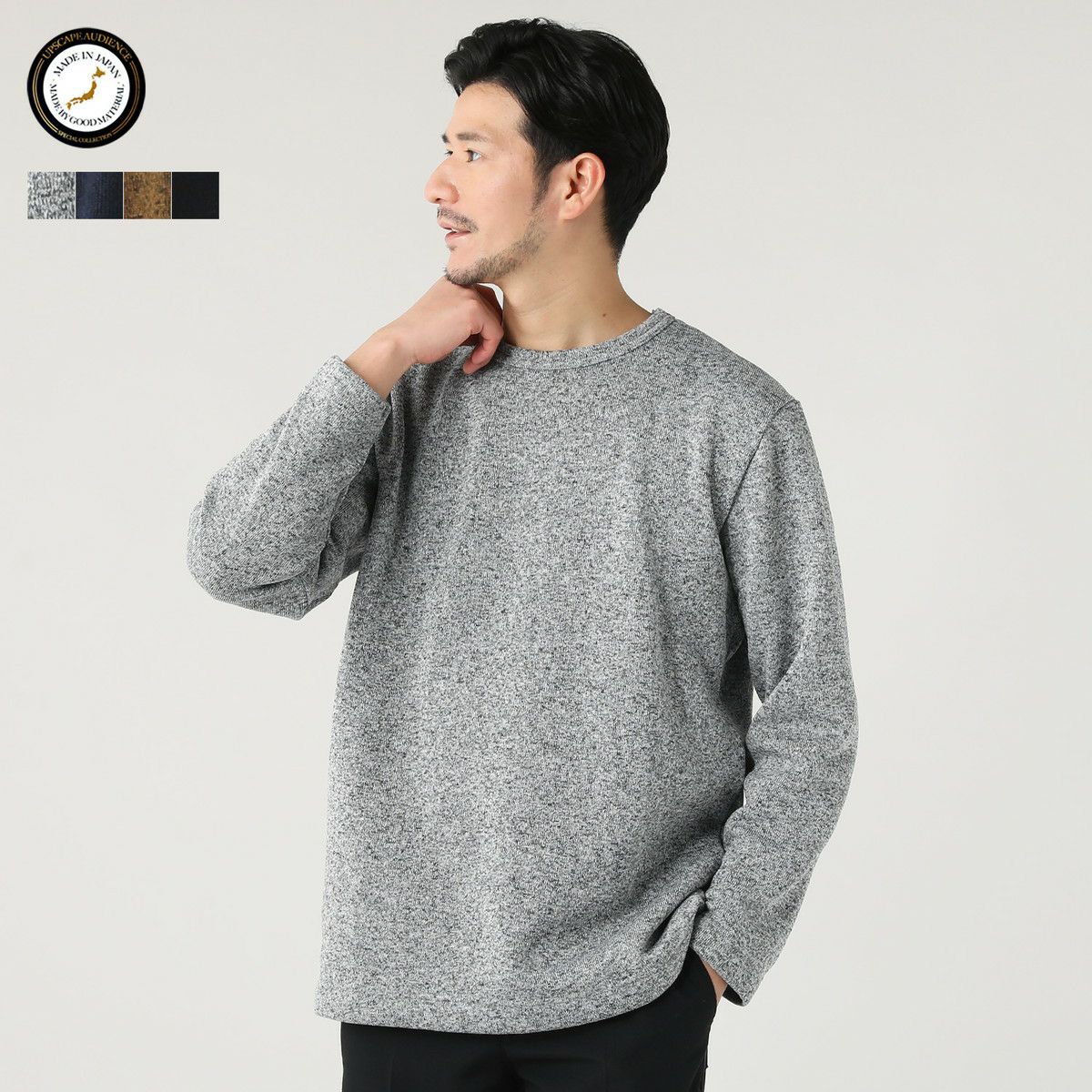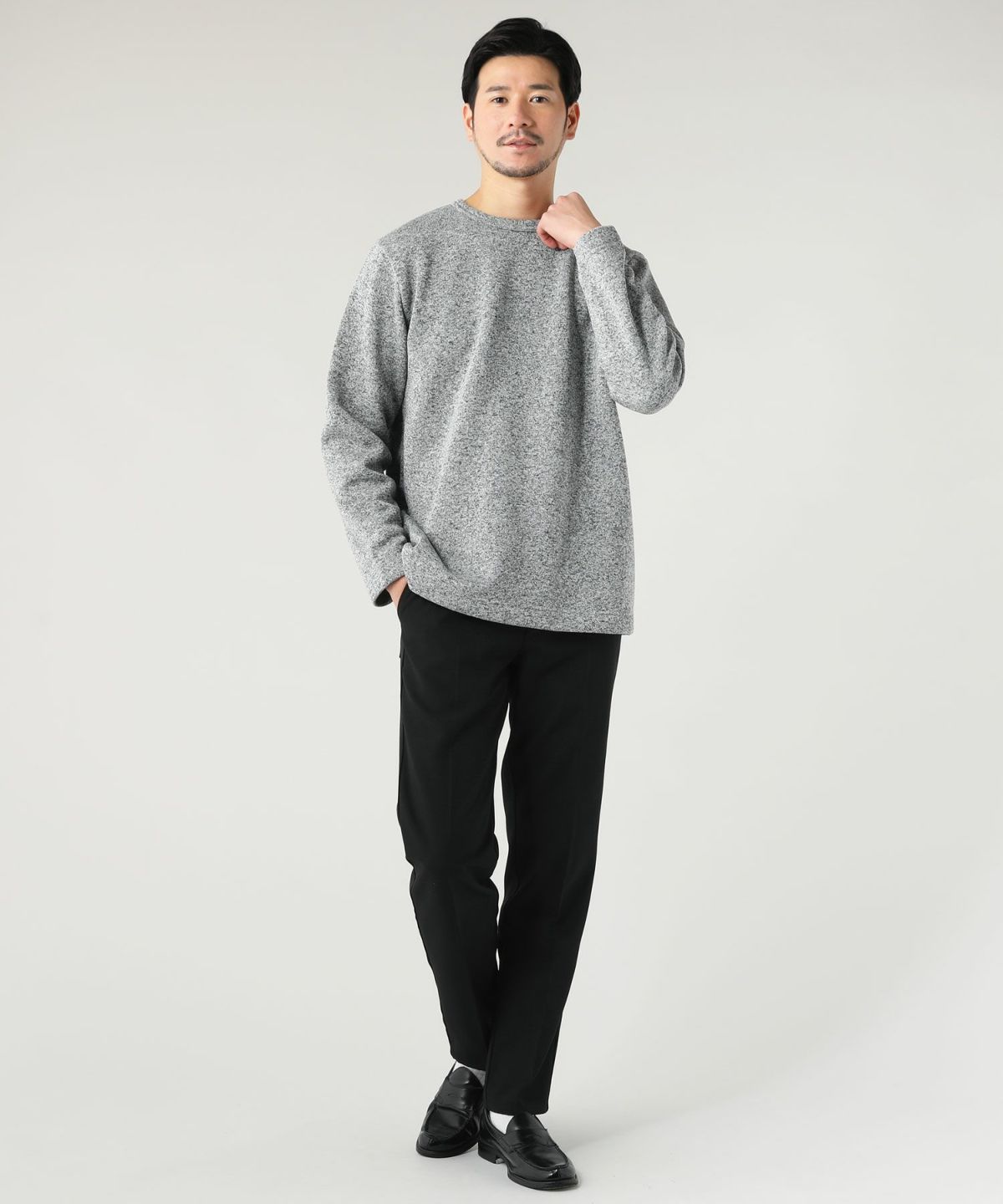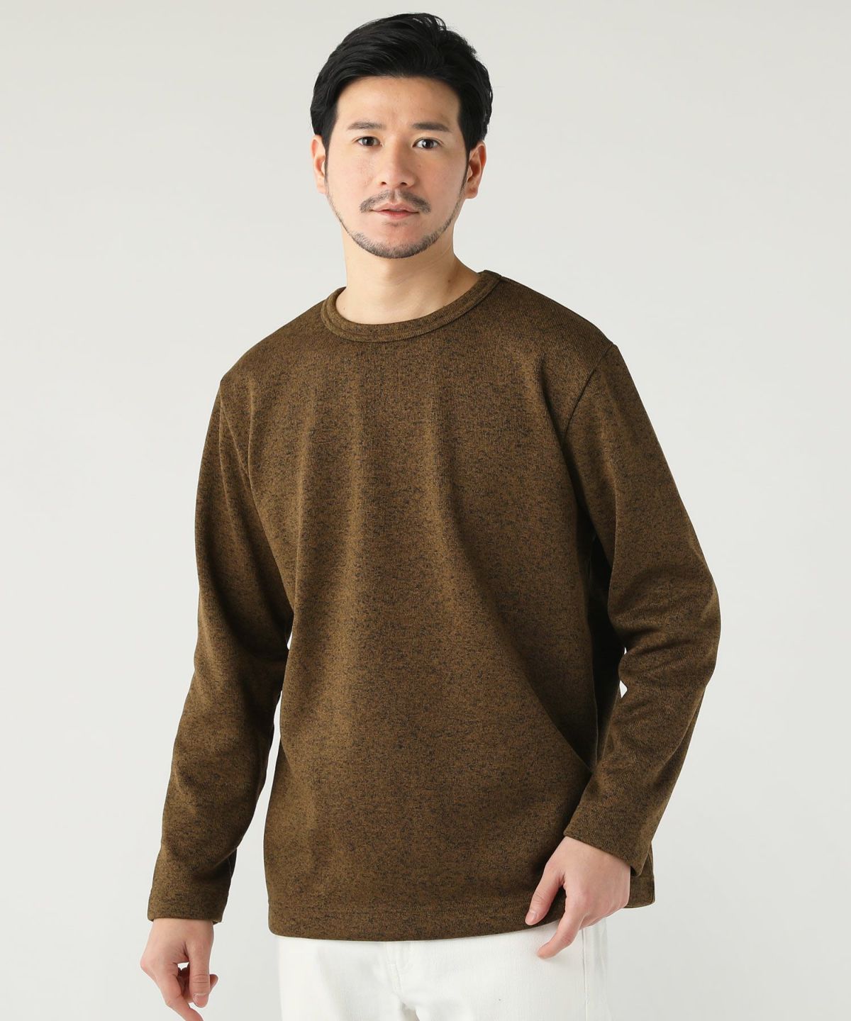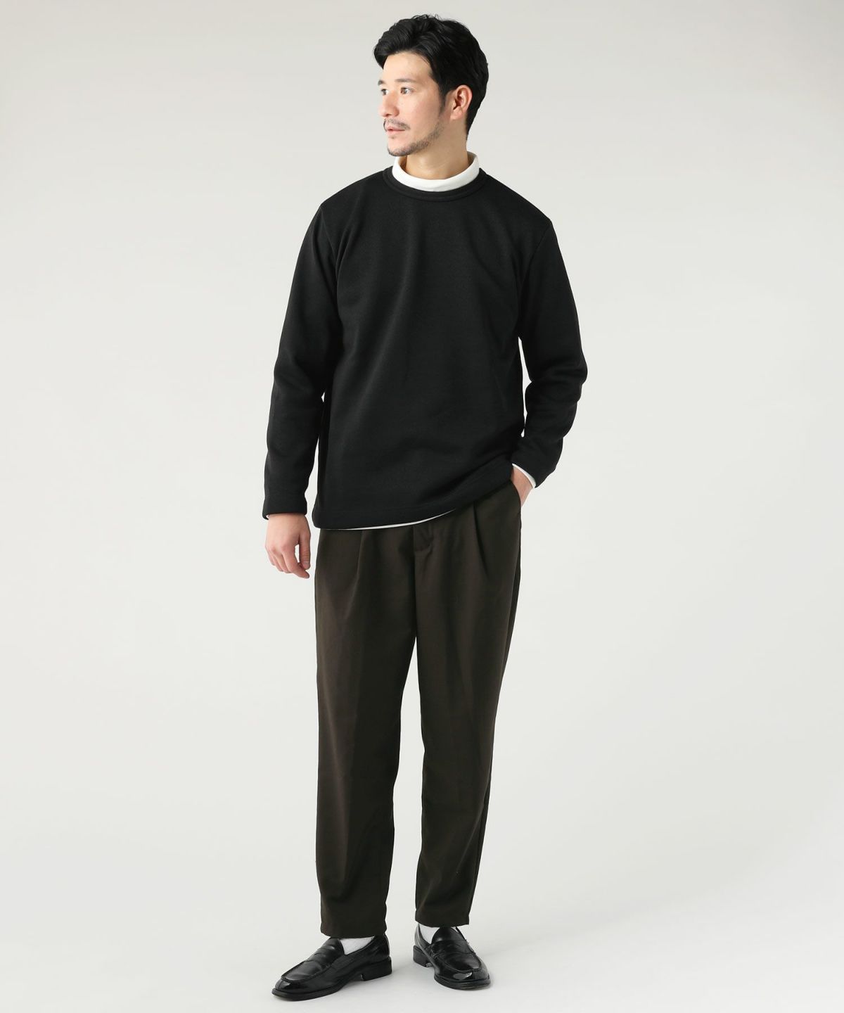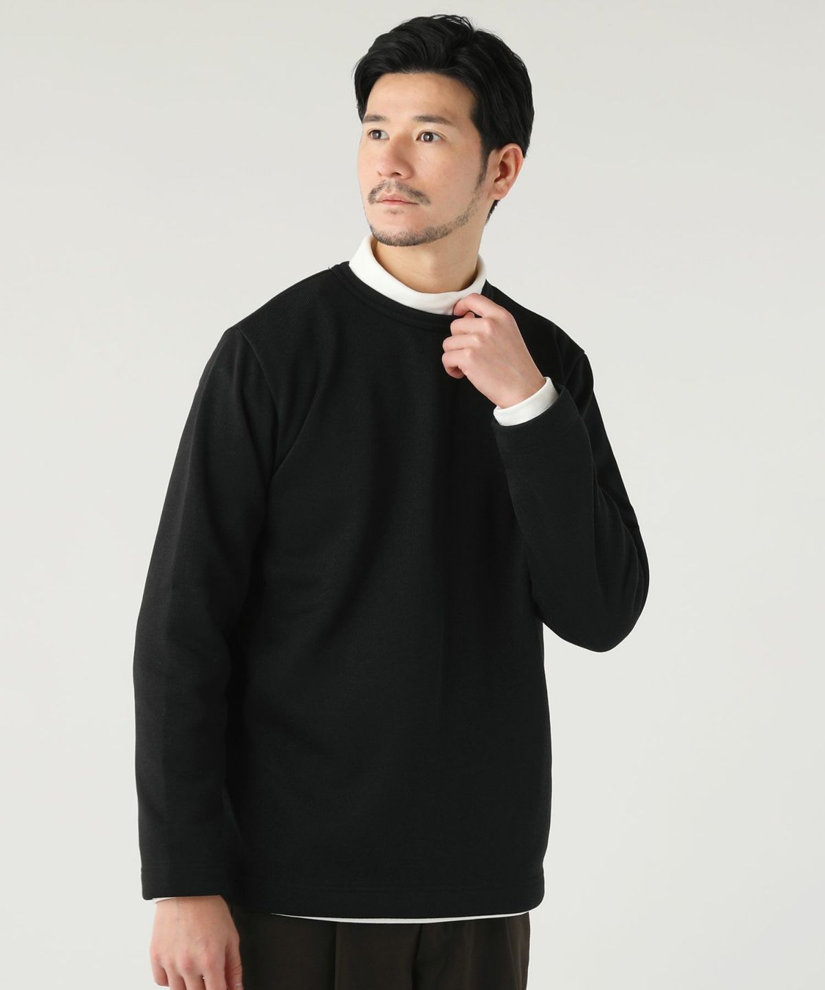 セーターとフリースの長所を兼ね備えたセーターフリース素材のクルーネックニットソーです。