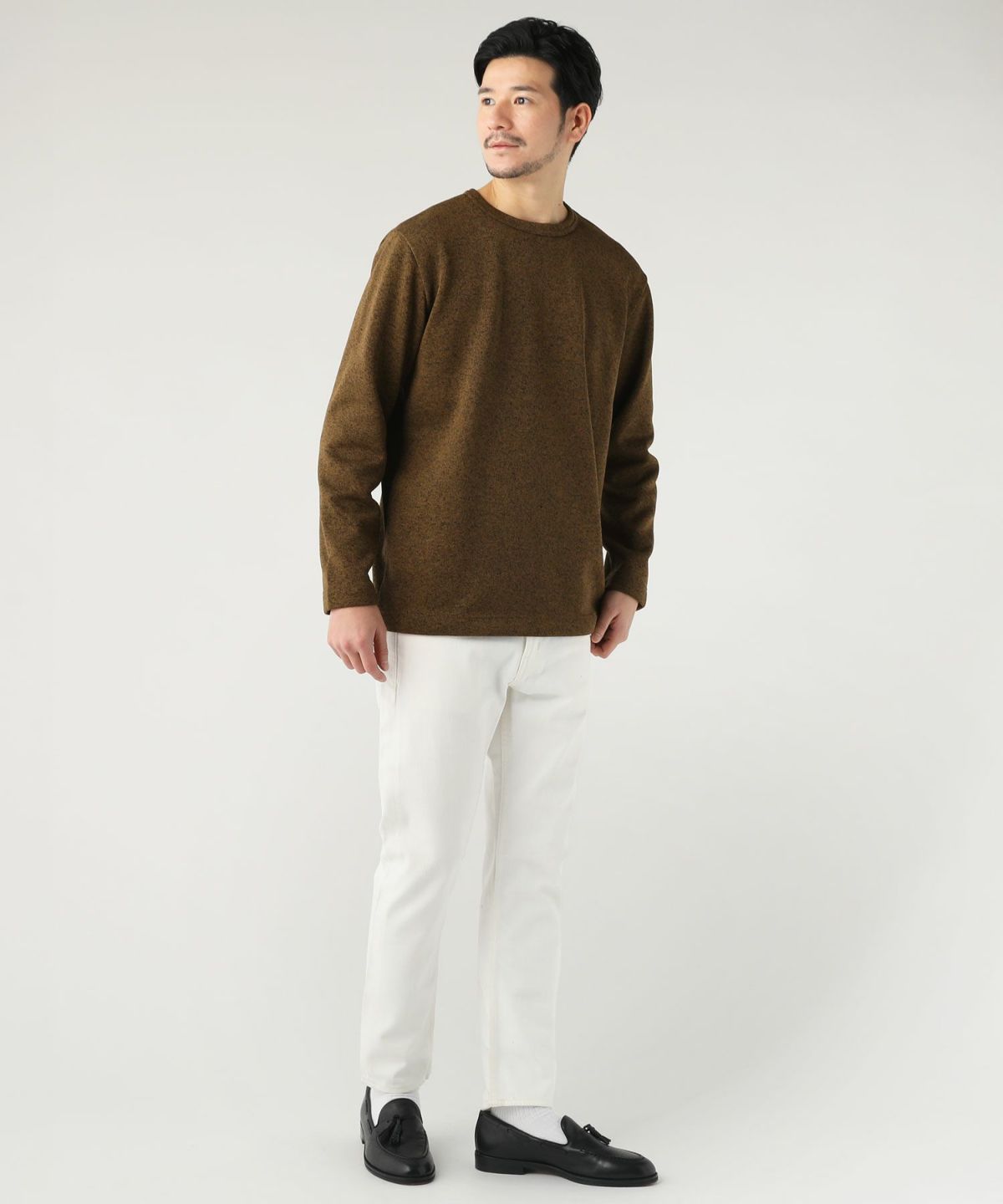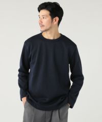 スタンダードなクルーネックデザインで、インナーにシャツやカットソーを重ねたレイヤードスタイルはもちろん、シンプルなボトムスやアウターとの相性も抜群。