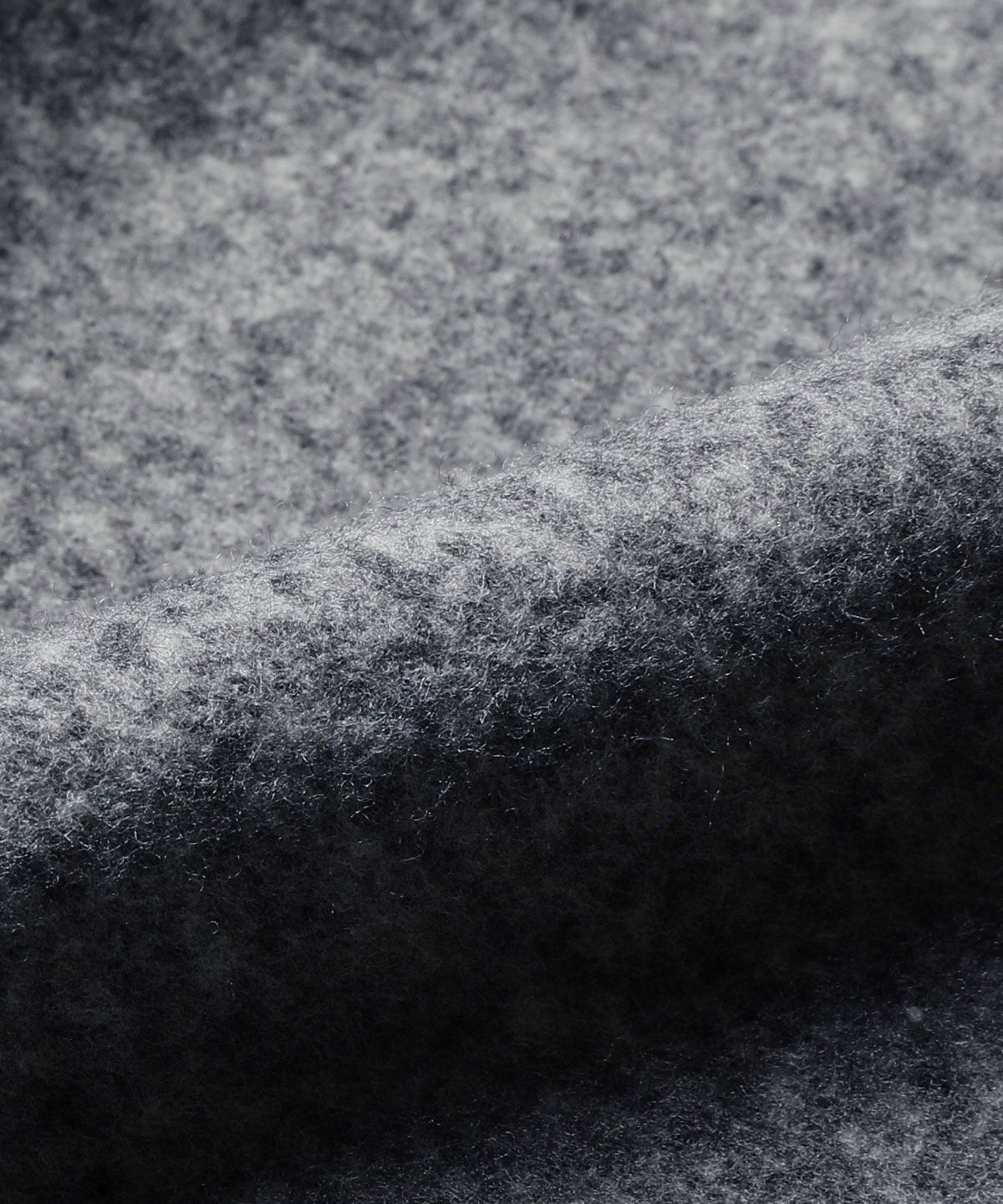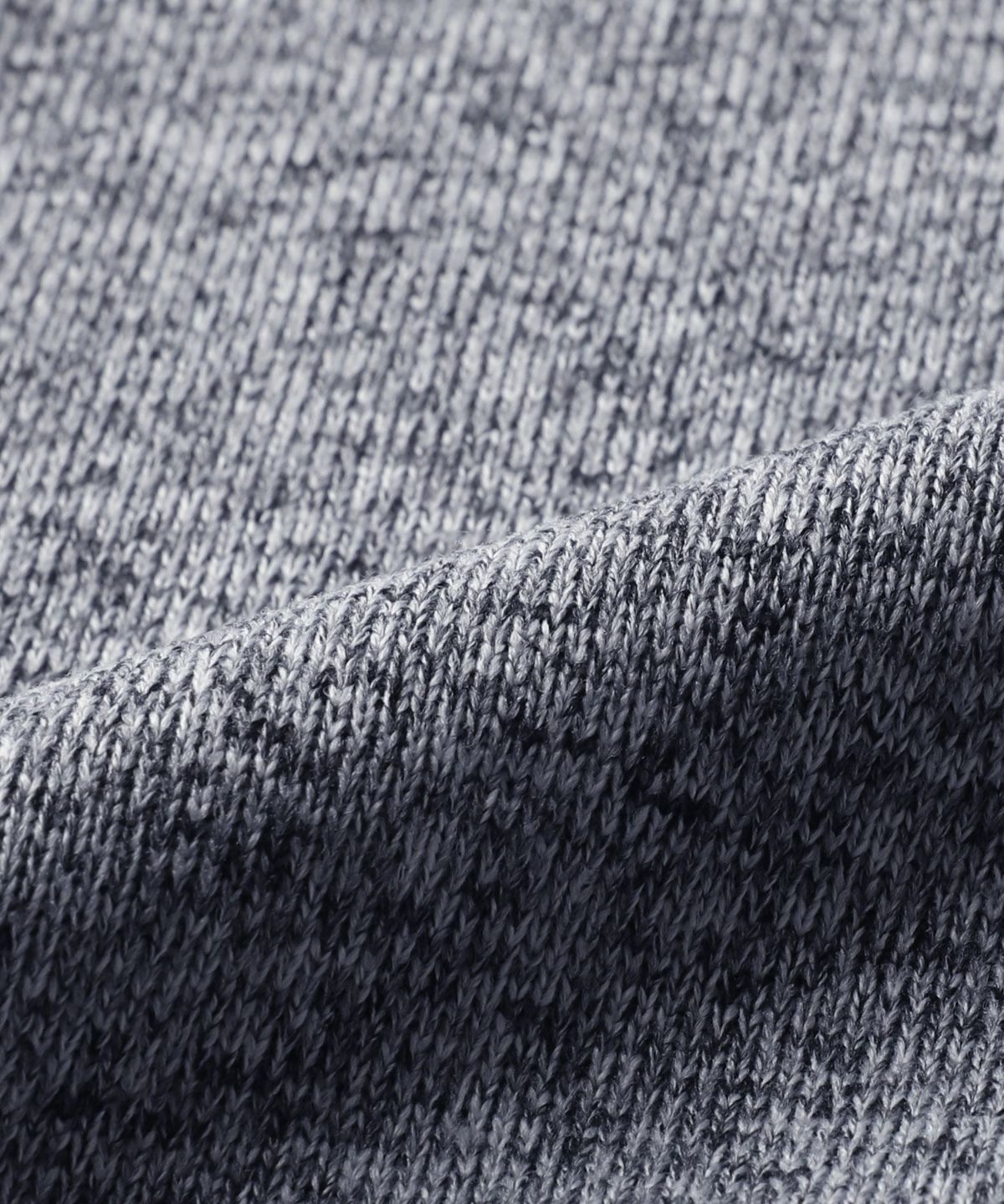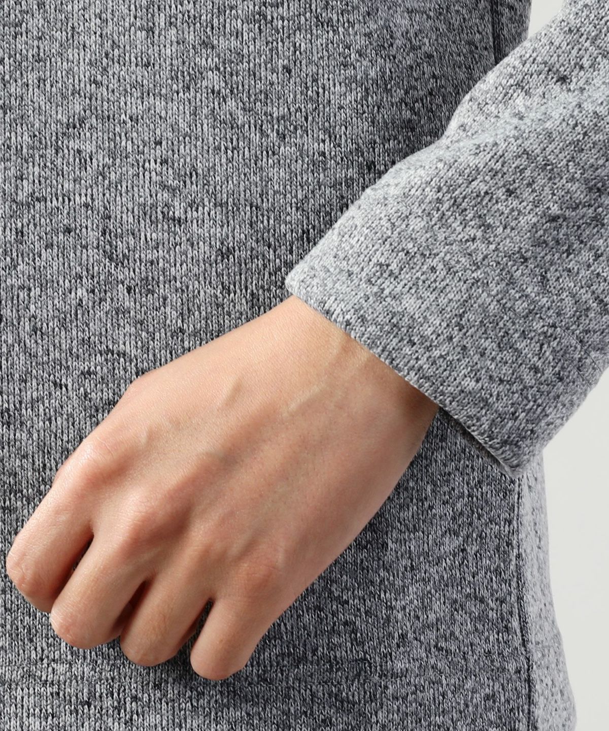 表面はニットと同じ表情でありながら裏地はふんわりとした起毛フリースに仕上げており、弾力感と優しい肌触りが特長。