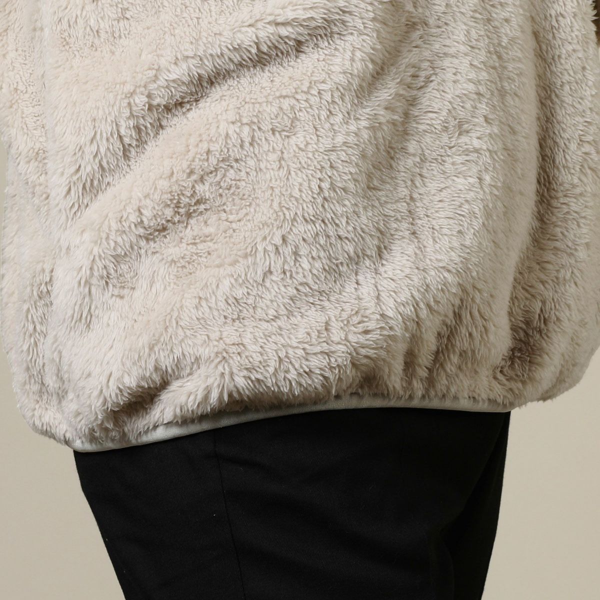 ソフトな肌触りのボアを用いた着心地抜群のプルオーバーです。大きめのサイジングでゆったりとしたシルエットを作り出します。上半身にボリュームが出るので、細身のボトムスと合わせればキレイなYラインが完成します。ふわふわとしていて暖かみのある、秋冬コーデの主役級アイテムです。