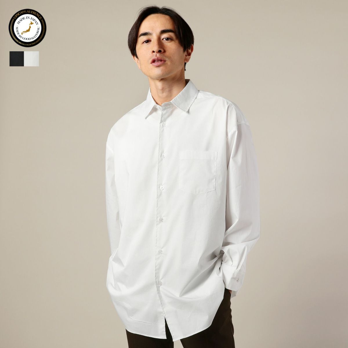 Upscape Audience/日本製70/30クロスストレッチタイプライターレギュラーカラー長袖ボクシーシャツ
