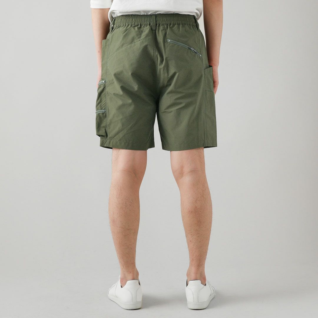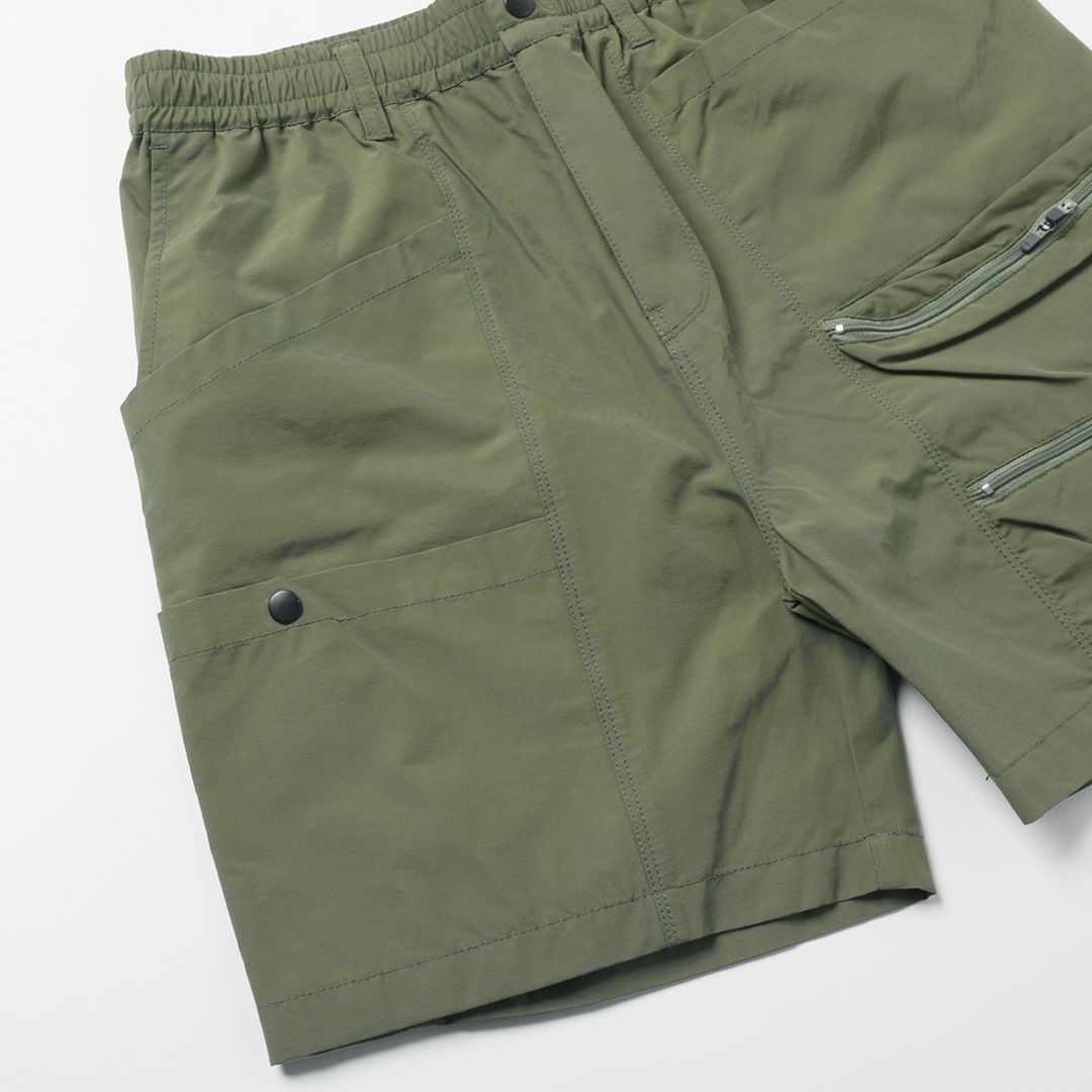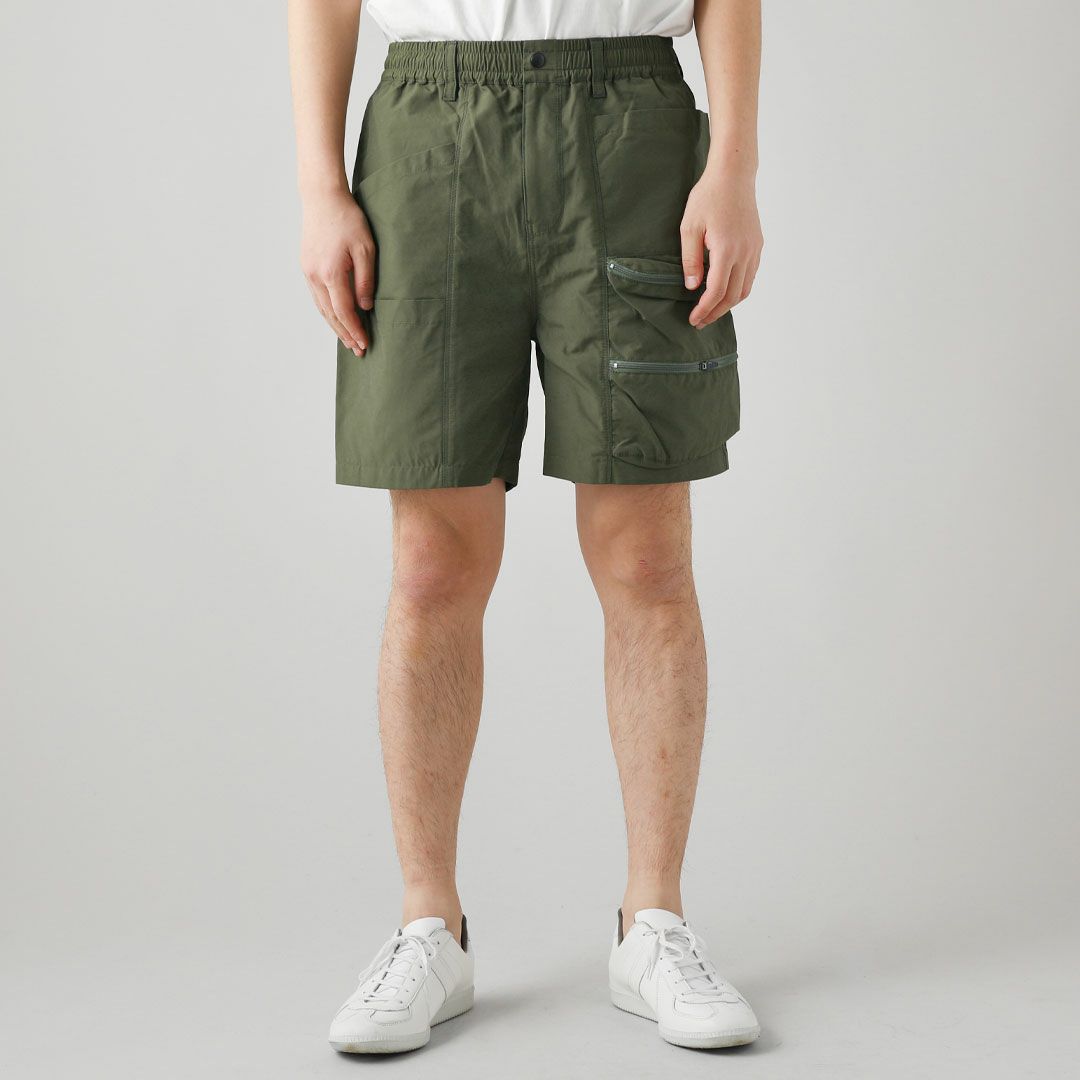 サイジングは全長をやや短く、裾幅は少し広げることで街着としても映えるAラインシルエットに。利便性に優れ、タウンユースからアウトドアシーンに幅広く対応するショーツです。