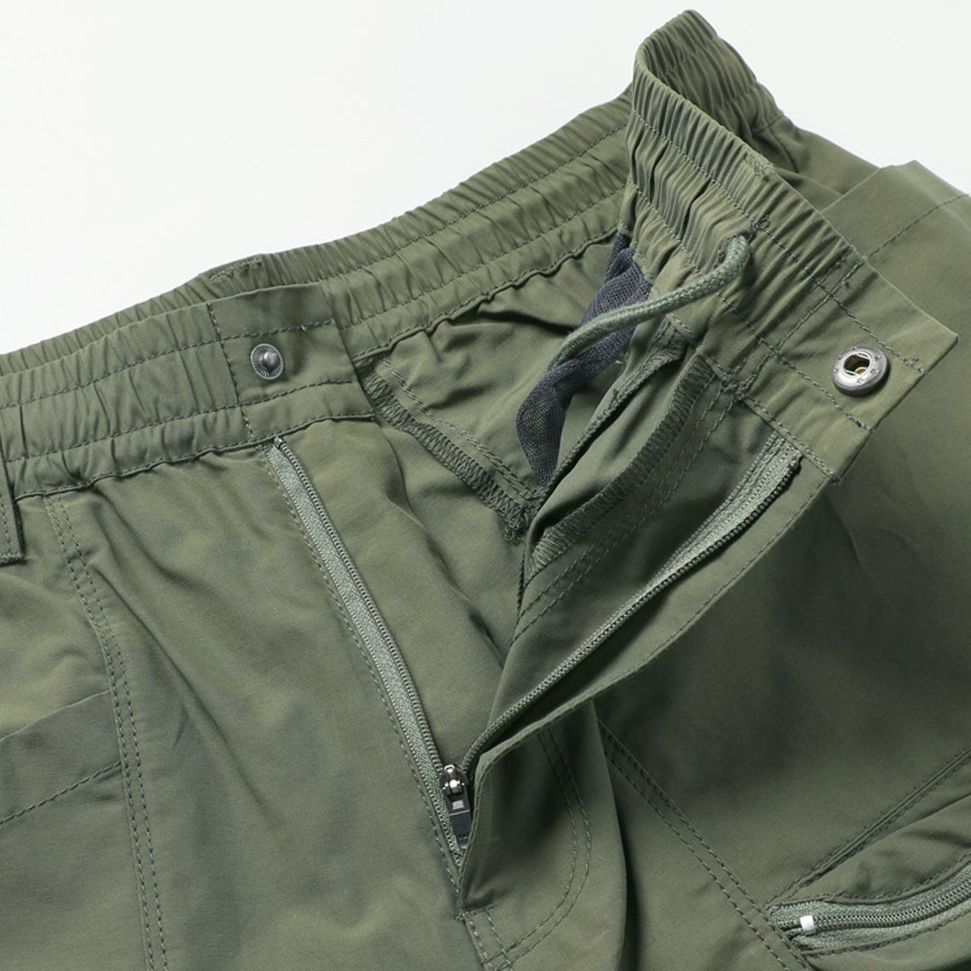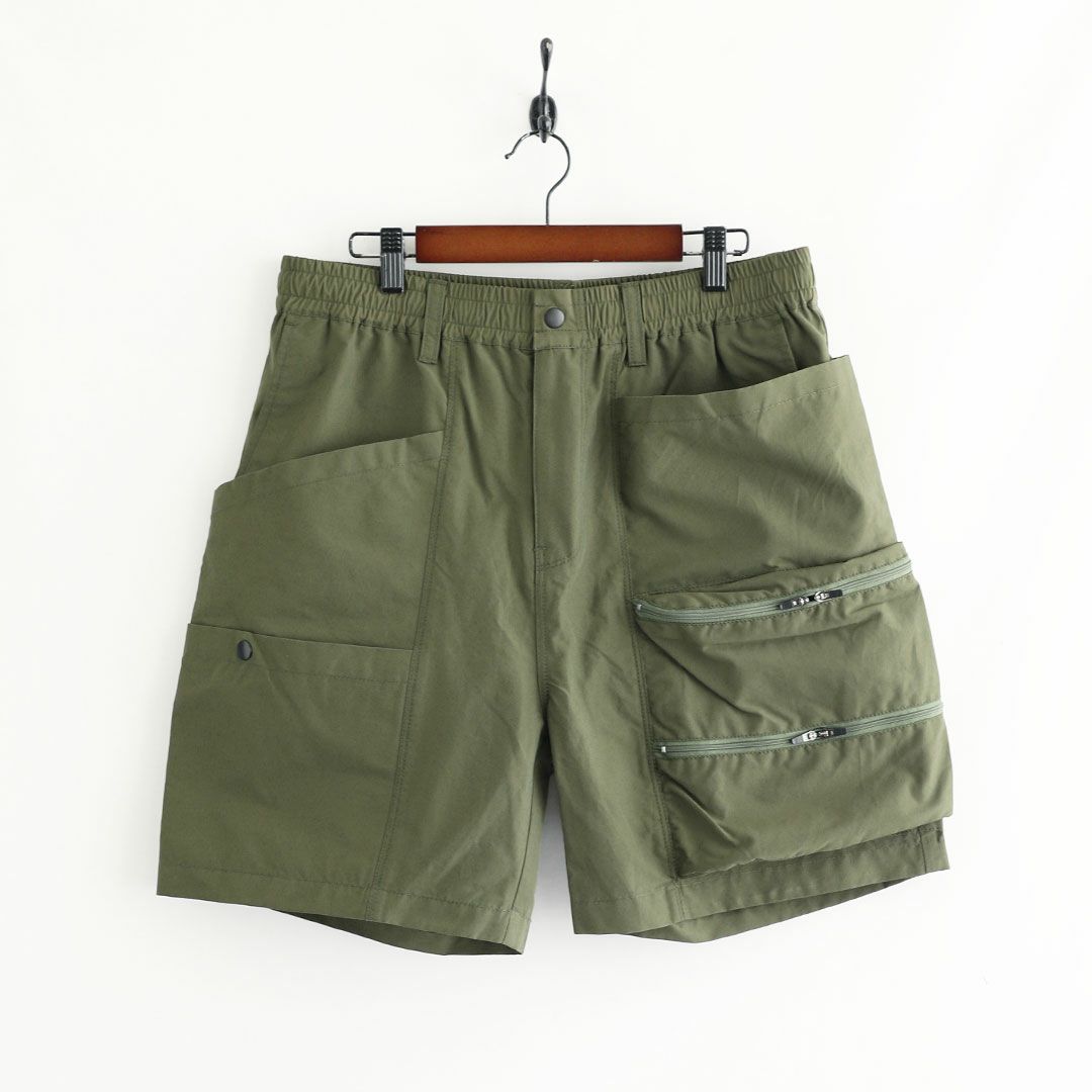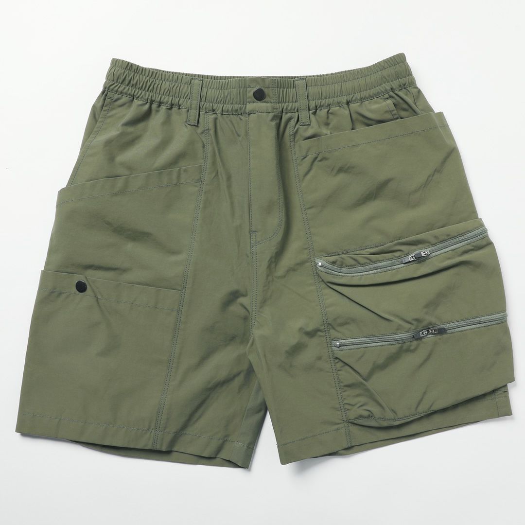 サイジングは全長をやや短く、裾幅は少し広げることで街着としても映えるAラインシルエットに。利便性に優れ、タウンユースからアウトドアシーンに幅広く対応するショーツです。