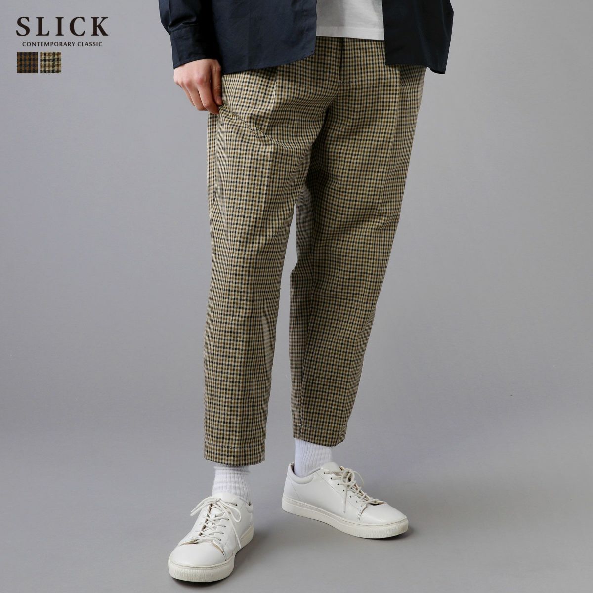SLICK/T/Rガンクラブチェックワイドテーパードパンツ