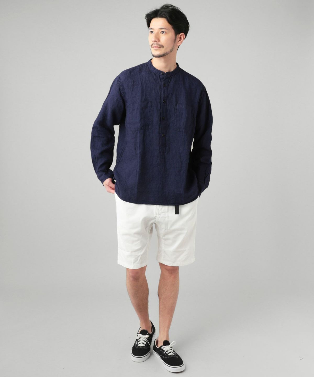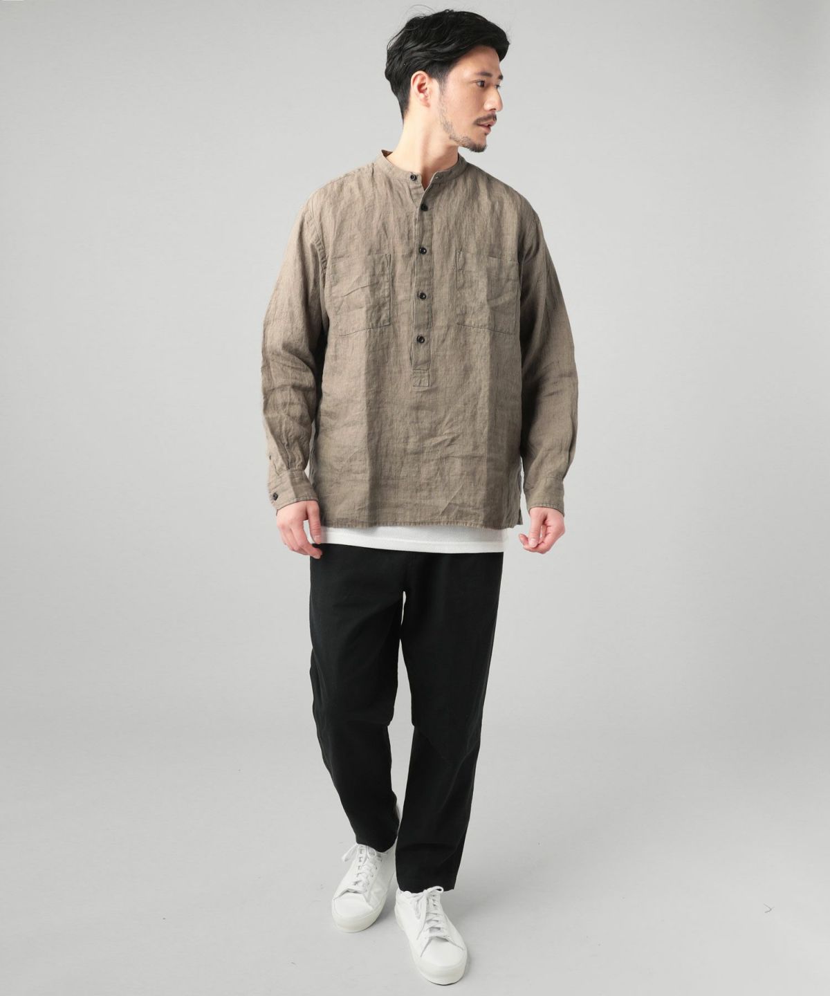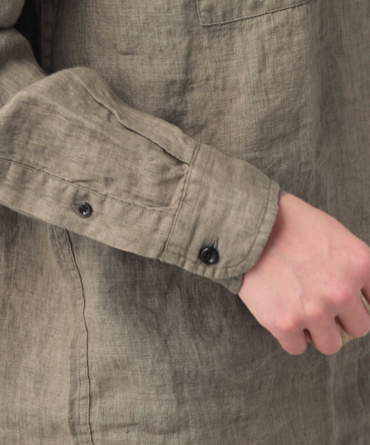 ALLOWED TO UNFOLD/ミストダイリネンバンドカラープルオーバーシャツ