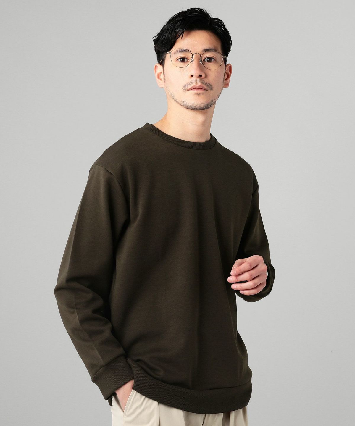NEVER/TCダンボールストレッチクルーネックプルオーバー