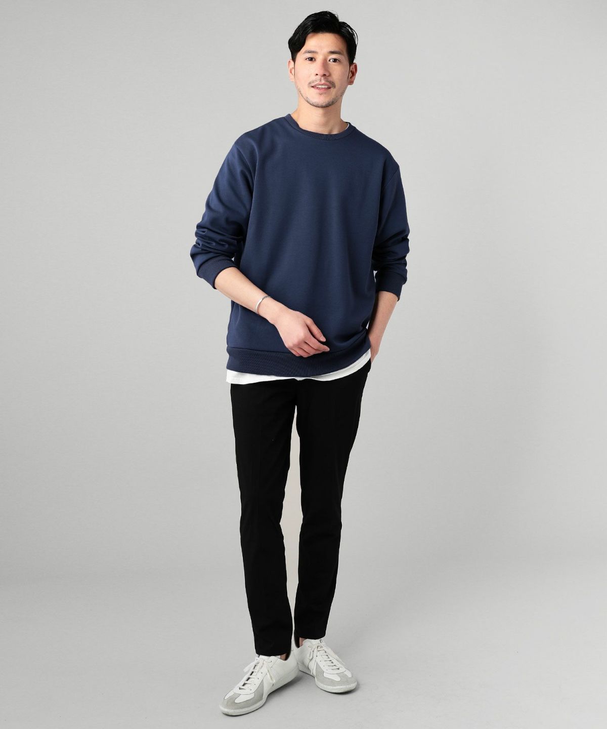 ●シンプルプルオーバーで創る余裕ある大人の着こなし
