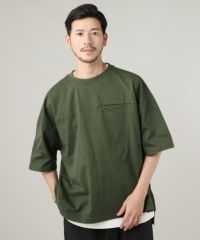 Upscape Audience/日本製VORTEX 8オンス(MVS天竺)シームレスポケットライン切り替えサイドスリッドボクシーAラインTシャツ