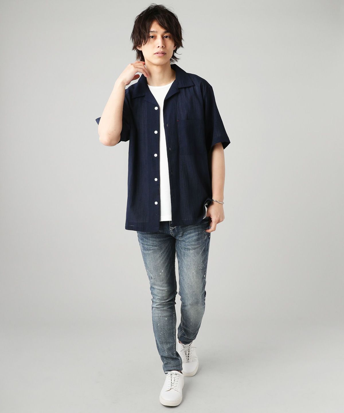 シャツ、インナーTシャツ共にお手持ちの色々なアイテムと組み合わせてコーディネートをお楽しみいただけるシンプルで汎用性の高いルックスが魅力。もちろんセットでのスタイリングもおすすめ。デニムやスキニーと合わせたキレイめスタイルや、柄もののショートパンツやハーフパンツでアクティブなスタイルなど、幅広いシーンにマッチします。