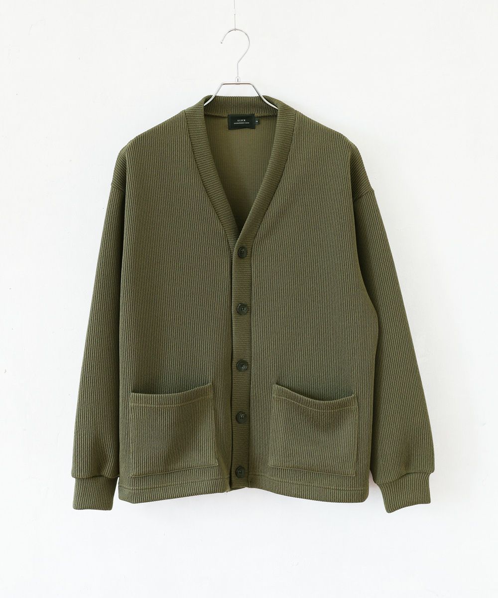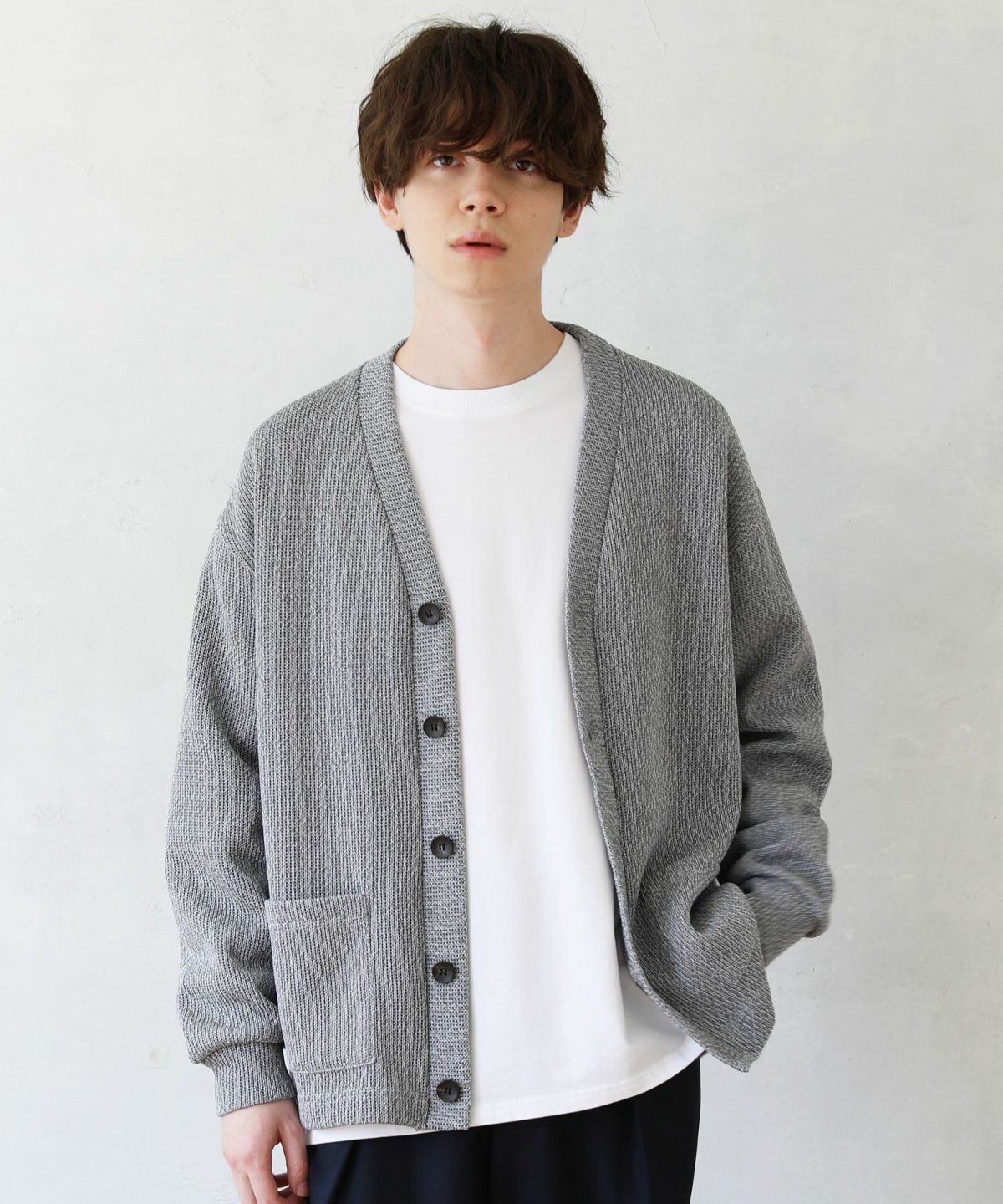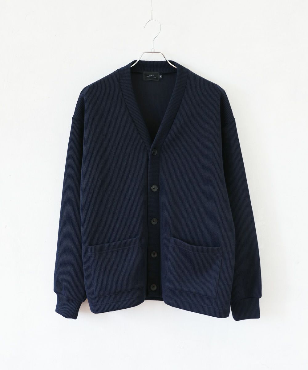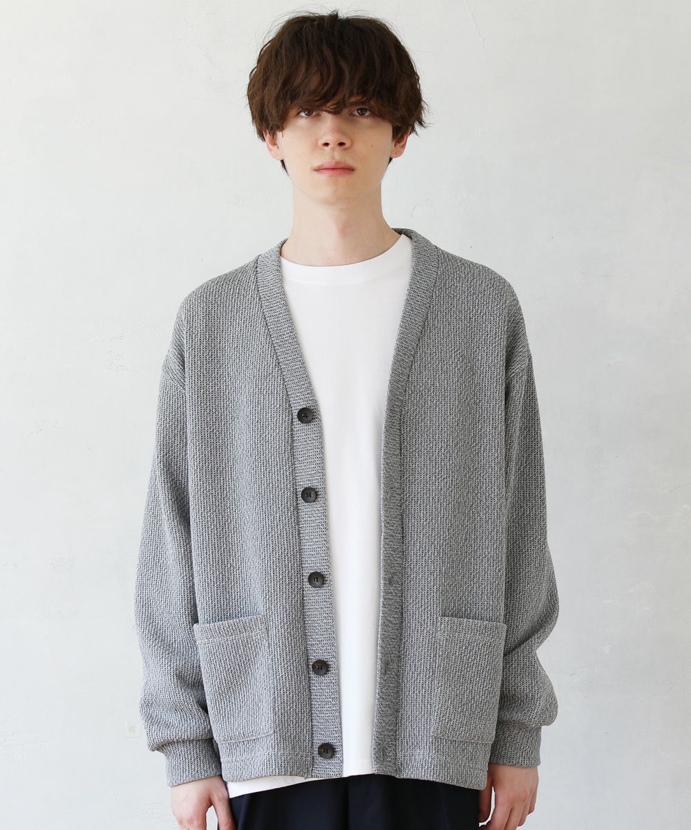クォーターゲージの生地を使用したニットライクな国産カーディガン。ざっくりとした編み地がカジュアルな印象を醸します。シンプルな無地のカラー展開で、アウターとしても重宝する着回し力抜群のアイテムです。