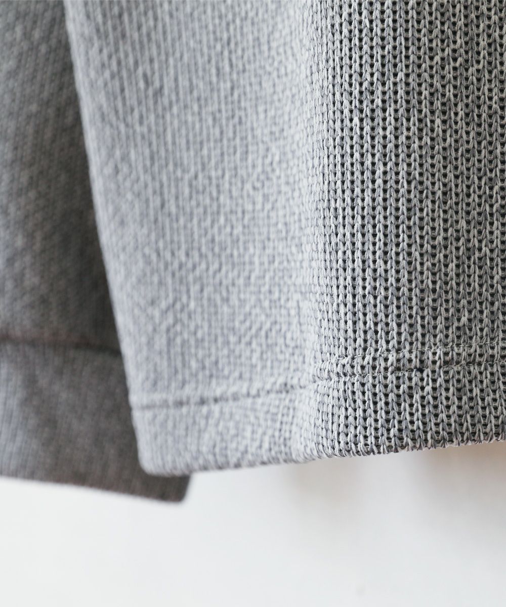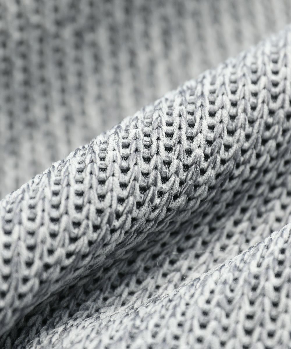 編まれた接結ジャージ素材は、ニットのような軽さと表面感でジャージのような安定感が特徴。シワや型崩れを起こしにくく軽量でしっかりとした厚さを持っているので、デイリーユースにも適した素材です。