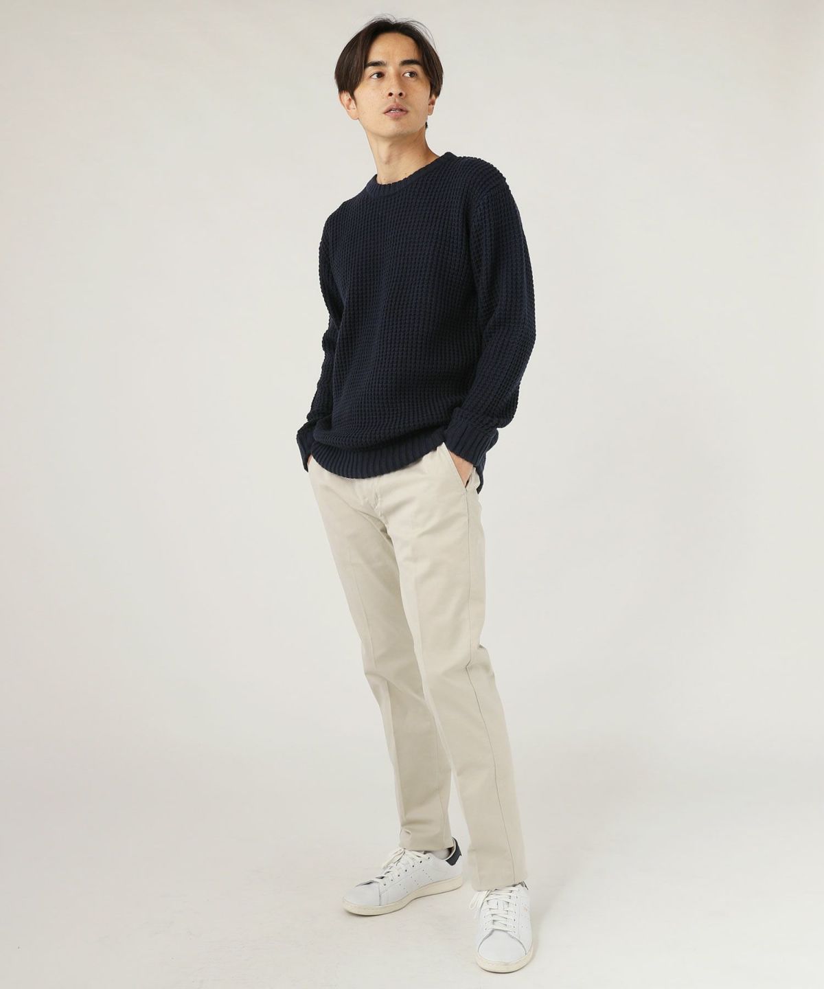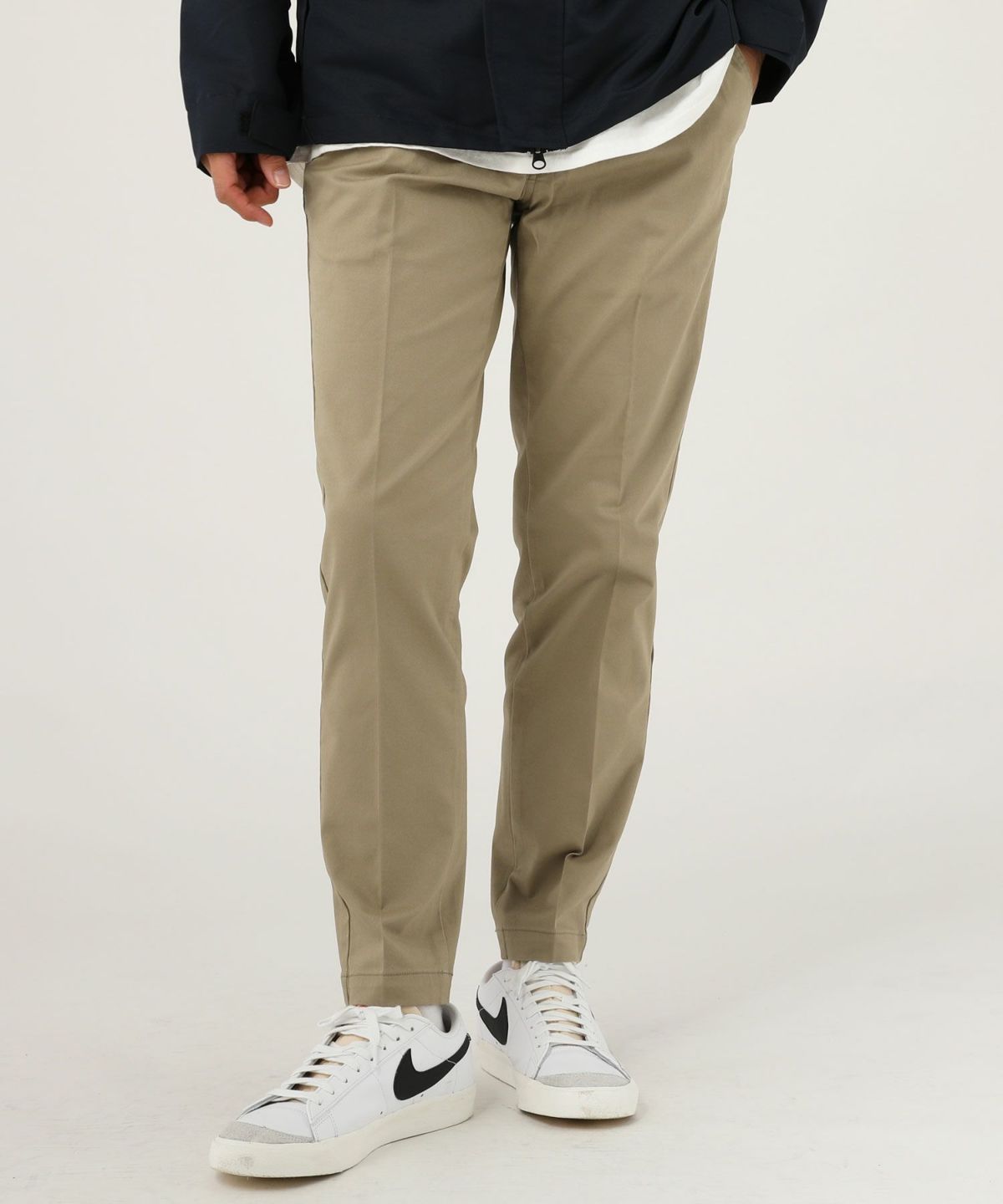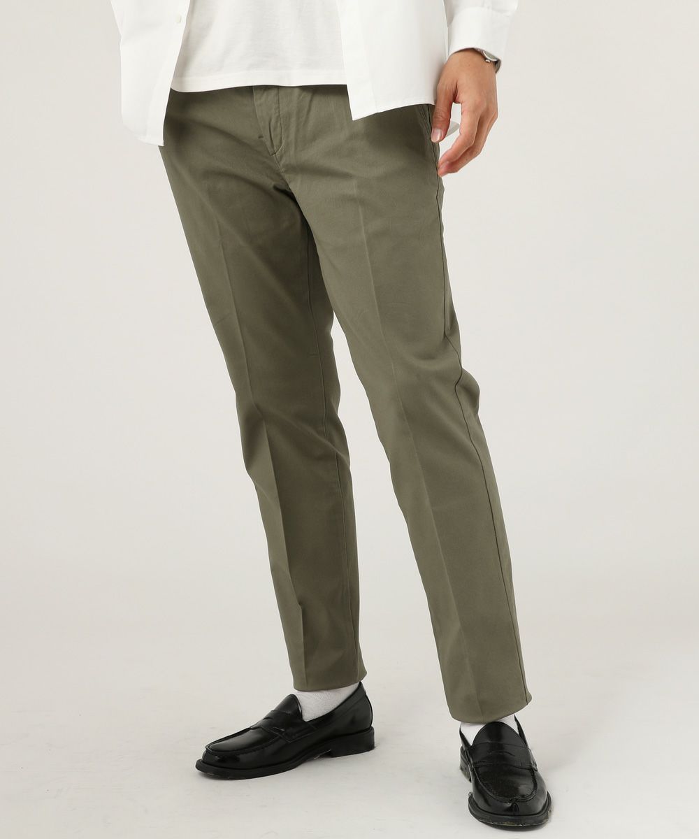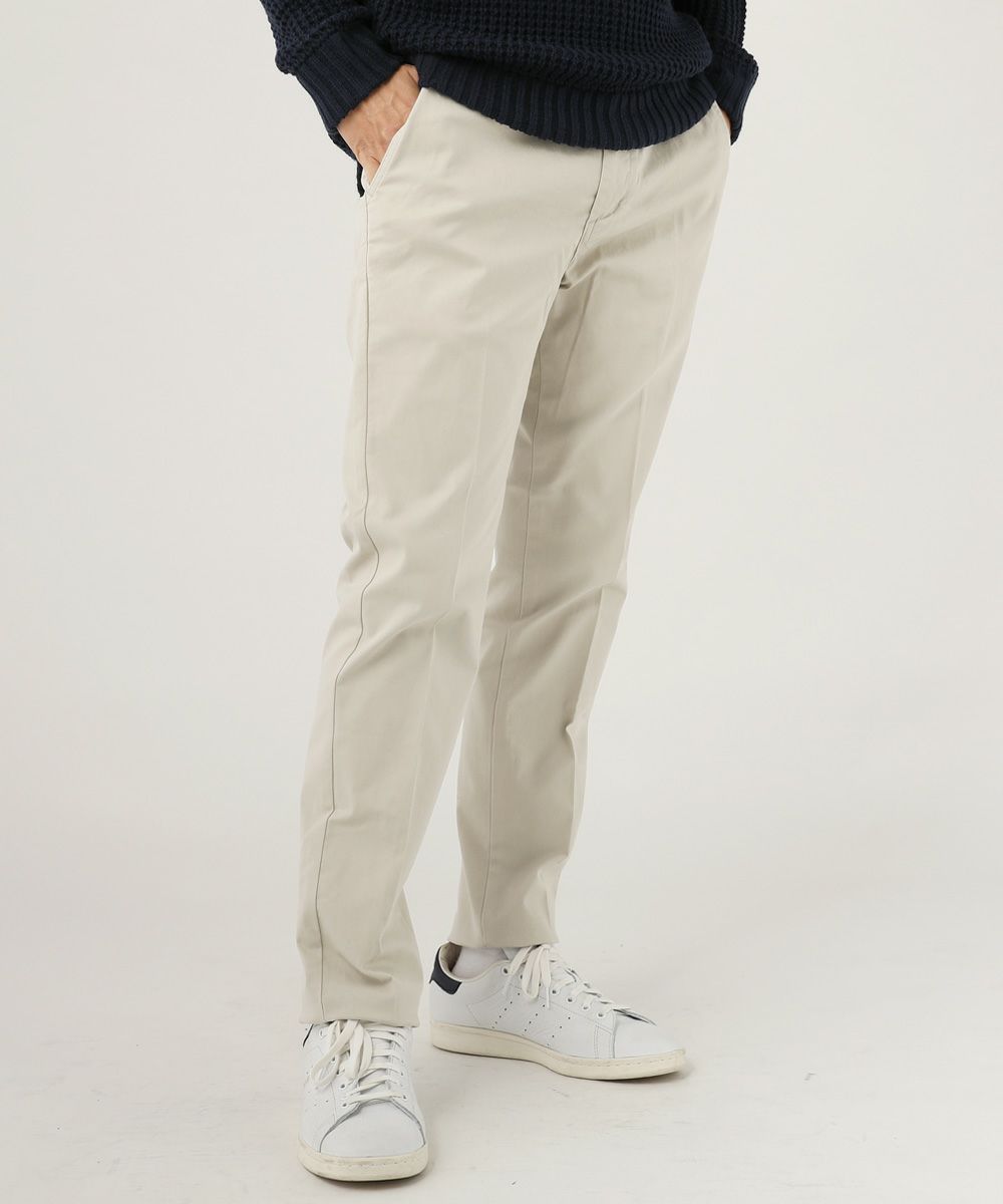 ストレッチ性の高い生地を使用した日本製チノパンツです。膝の曲げ伸ばしに対応するため、動作にストレスを感じません。インド最大の紡績グループVardhman(バルドマン)社で紡績された密度の高い綿素材を使用しており、程よい厚みながら丈夫な作りです。