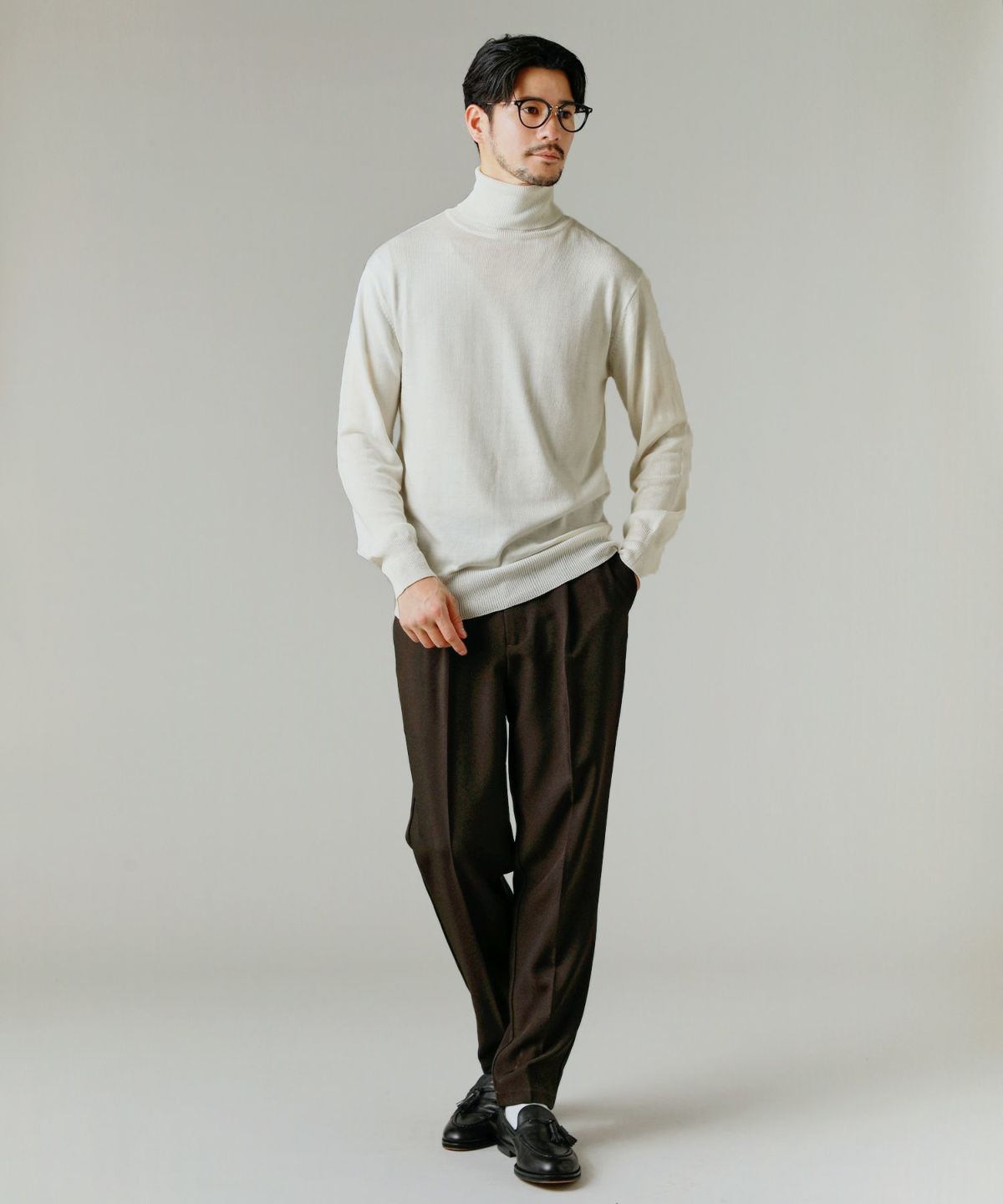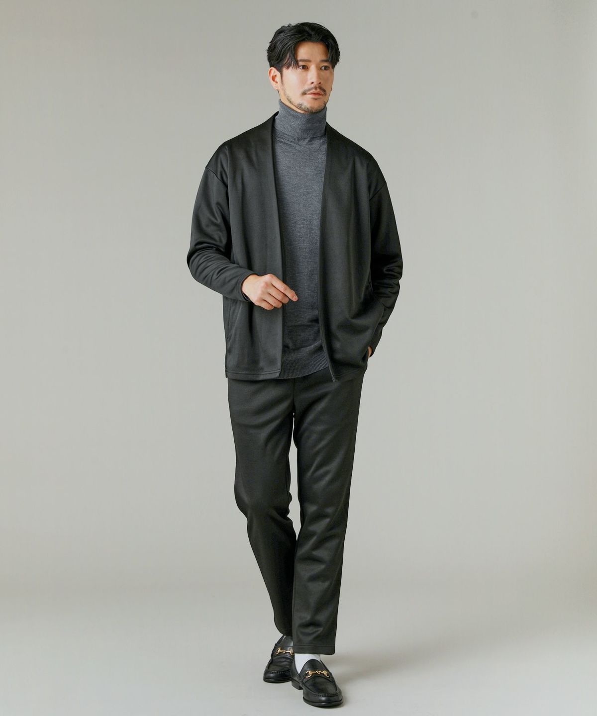 【セットアップ3点セット】ノーカラー/ダブル/シングルテーラード・ストレッチスラックス・ハイゲージモックネックニット