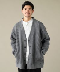 日本製尾州コットンキルトくるみボタン3XLカーディガン