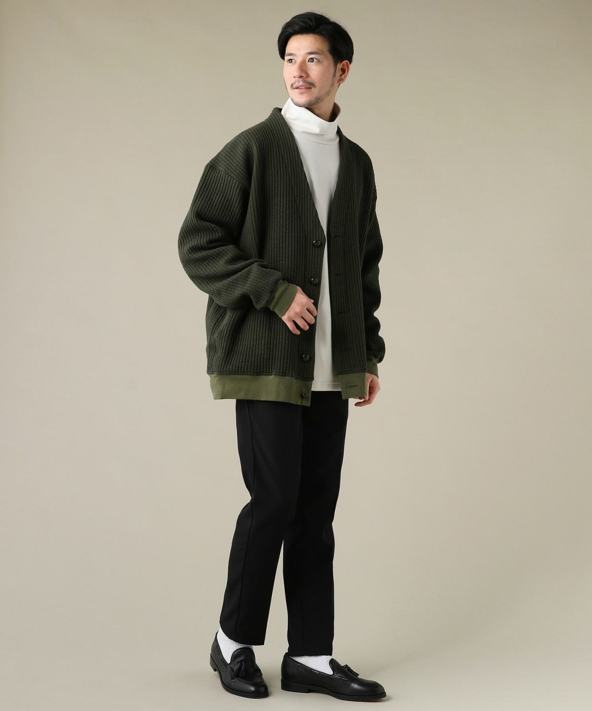日本製「尾州」コットンキルトくるみボタン 3XLカーディガン