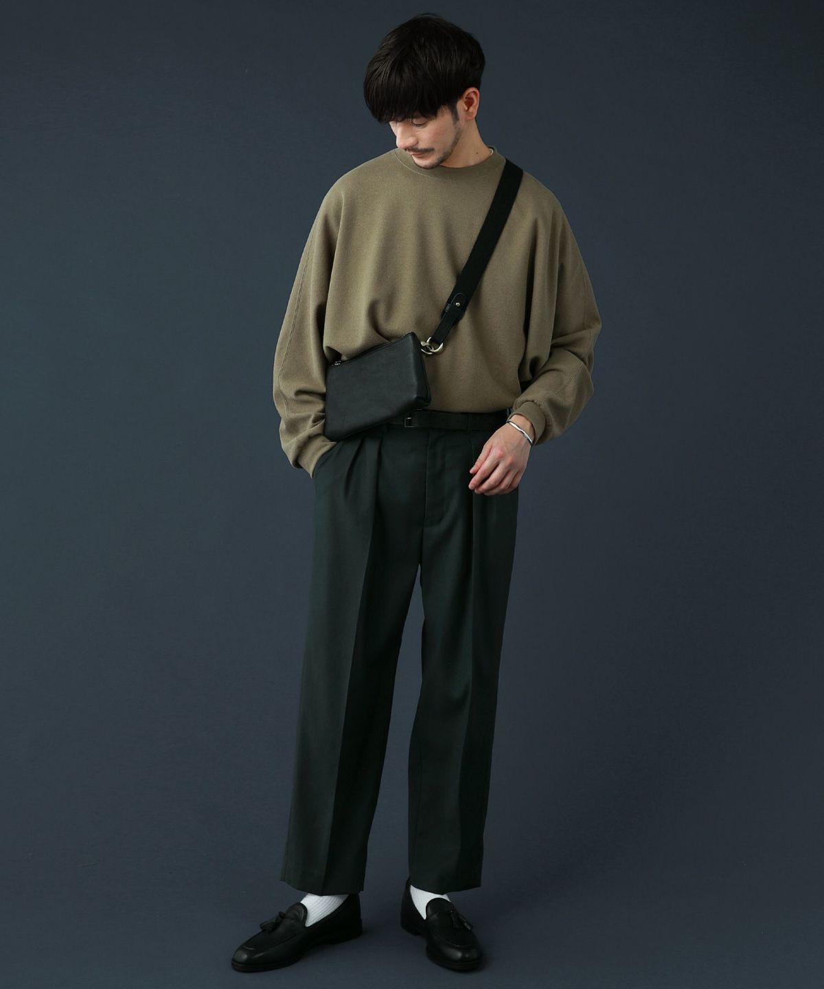 肌触りが良く、またオールシーズンで活躍する便利さが人気。ポリウレタン混なのでストレッチ性があり、膝の曲げ伸ばしなどの動作がストレス無く行えます。素材の持つとろみと落ち感がクリーンな印象を与え、カジュアルからキレイめまで幅広いコーデが可能です。