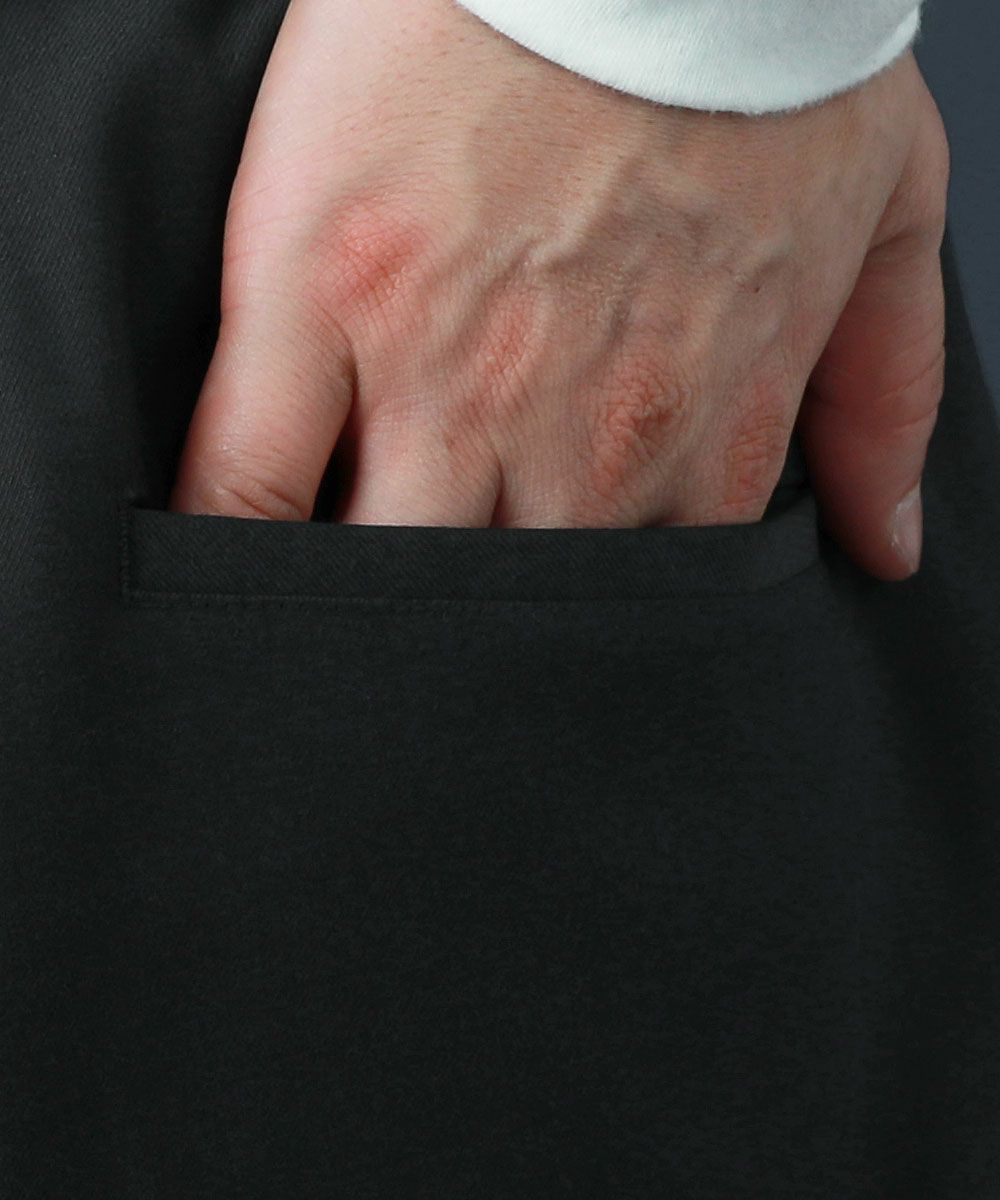 フロント・バックスタイルに入ったセンタープレスは縦の線が強調され、脚長効果とスタイルアップを実現。 ワイドシルエットながらキレイめな印象にまとめてくれます。裾部分はルイス仕上げにより、表からステッチが目立たず上品な印象をプラス。細部のディテールもこだわりました。
