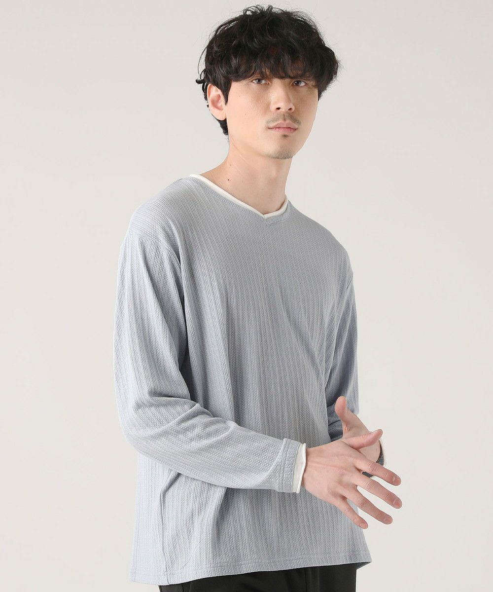 さり気ない立体感が特徴のリップル生地を使用したフェイクレイヤードカットソー。